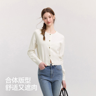 圆领正肩上衣气质温柔显瘦基础毛衫 森柔 短款 女春季 森马针织开衫