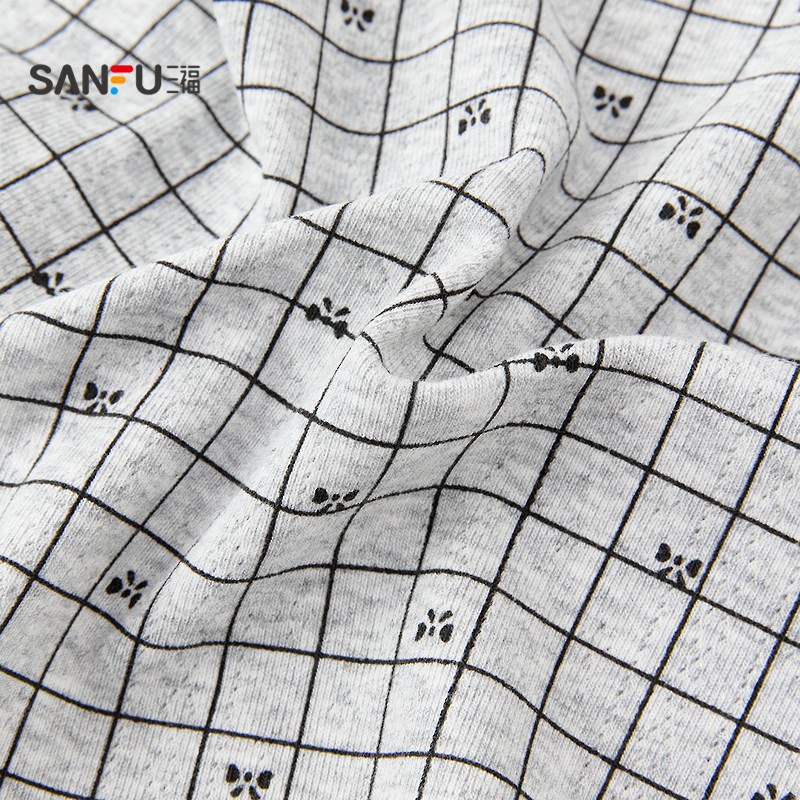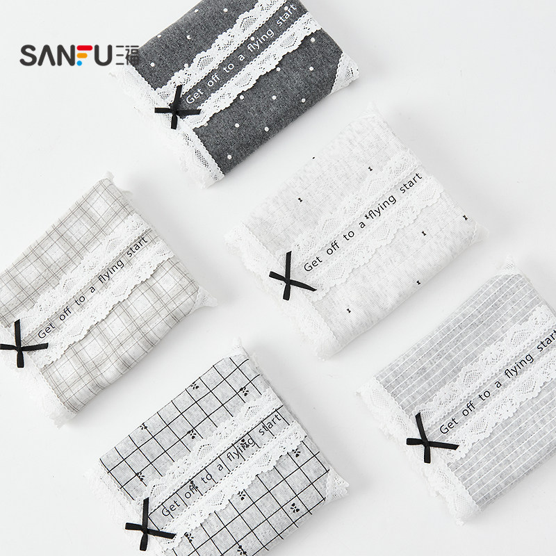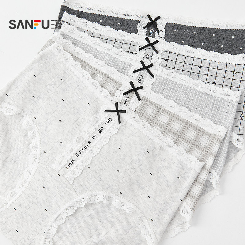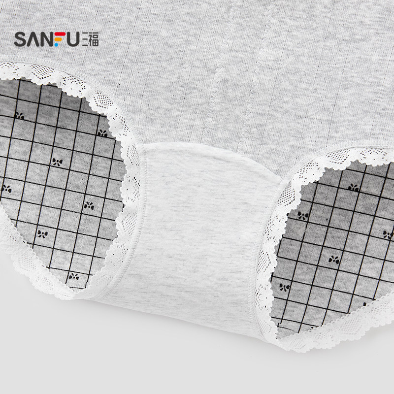 三福女中腰包臀内裤 504277 格雷系几何蕾丝花边透气半平角裤