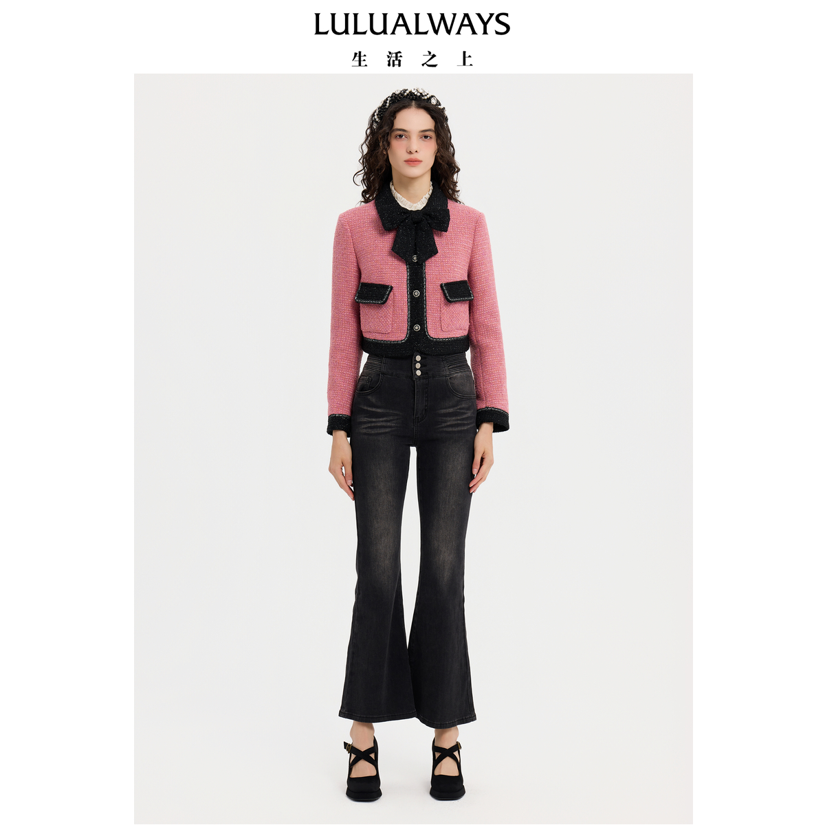 牛仔裤 气质高腰约克剪裁显瘦金属链条喇叭裤 女 新款 ONLY2025冬季