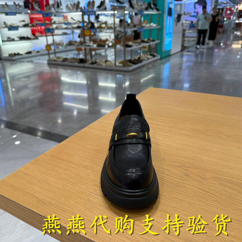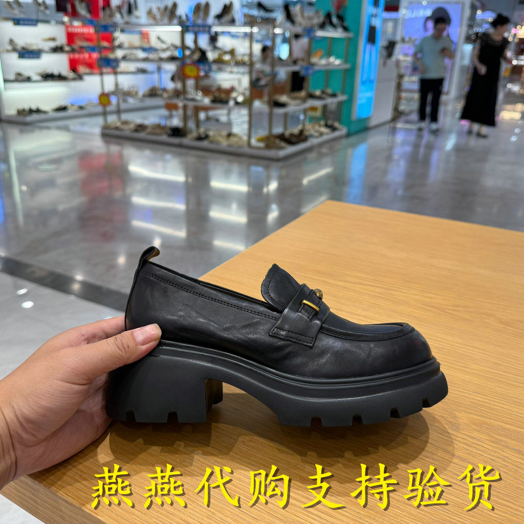 百丽2025秋款 深口单鞋 女鞋 复古厚底小皮鞋 E1Y1DCA5 乐福鞋 专柜正品