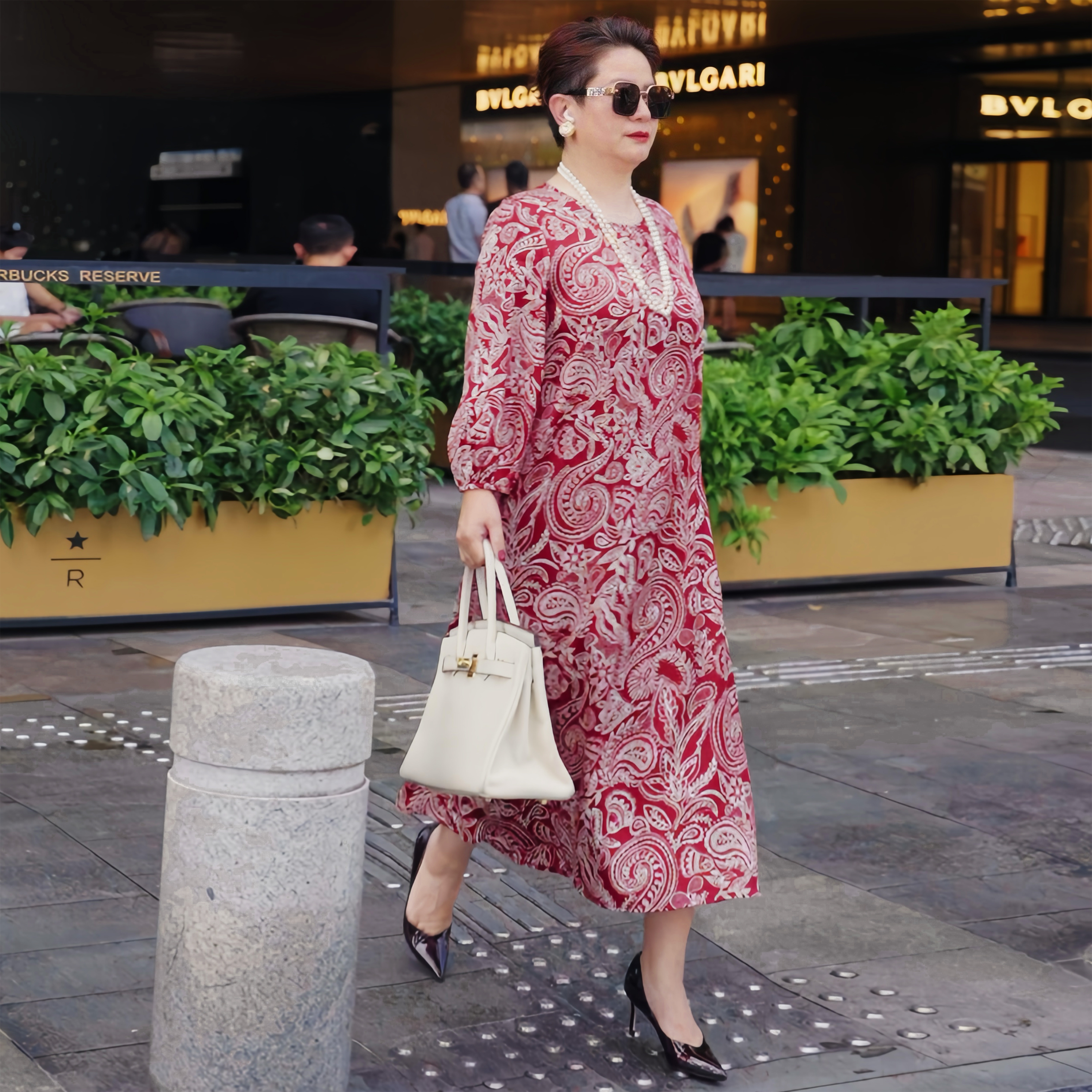 贵气高端显瘦免熨雪纺印花连衣裙0331 2026早秋款 向红同学大码 女装