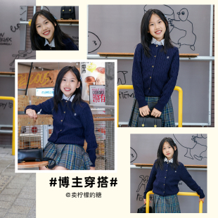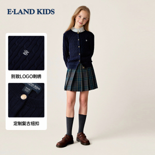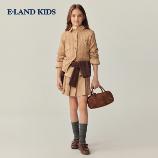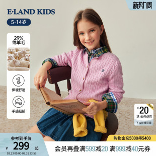 女童针织开衫 kids衣恋童装 eland 春秋休闲绞花毛衣 29%绵羊毛