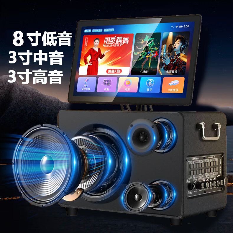 JBA新款 户外广场舞音响带显示屏幕点歌机大功率户外家庭KTV音箱