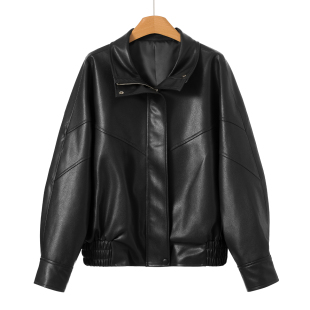 松紧收摆宽松痞帅插肩袖 拉春装 皮衣外套602 韦 2299羊皮革