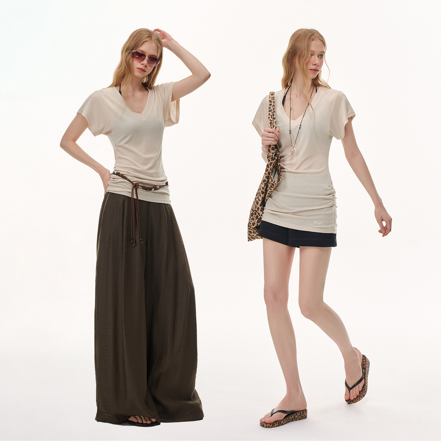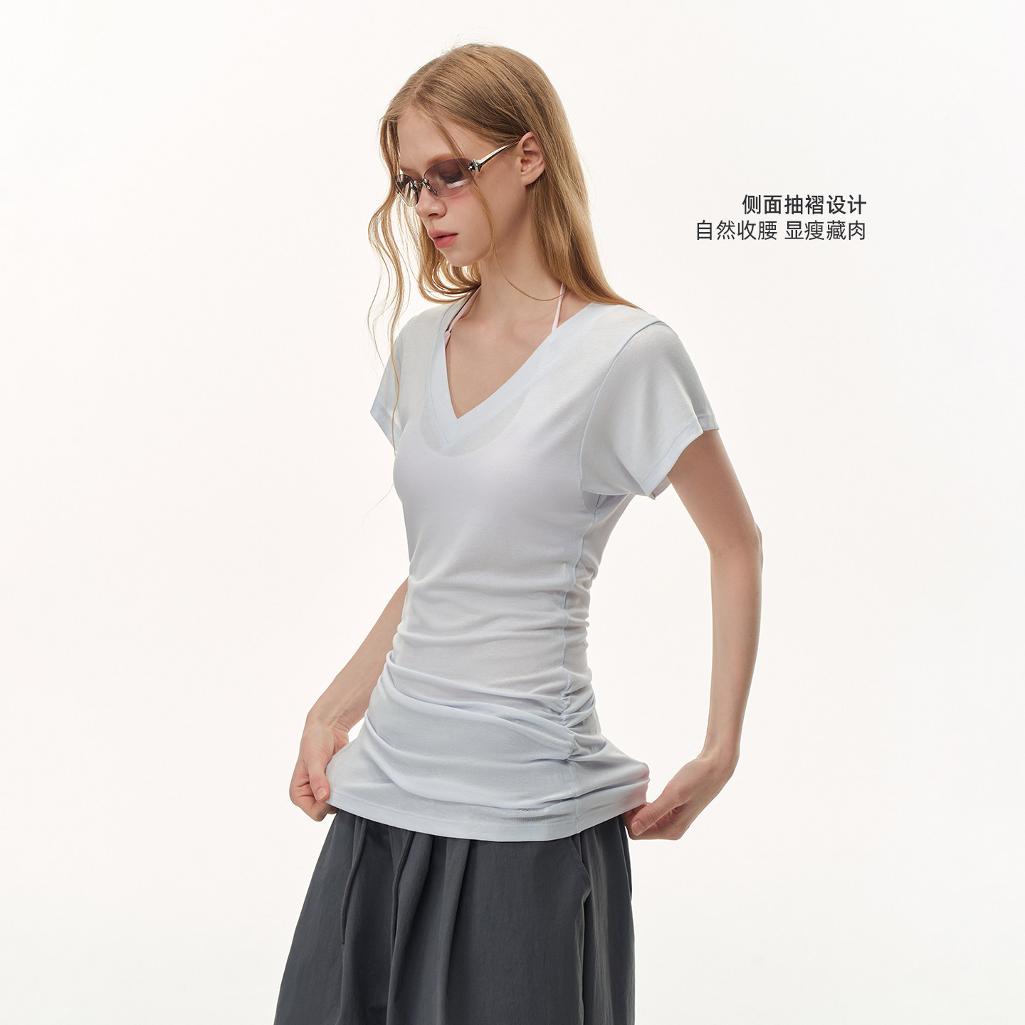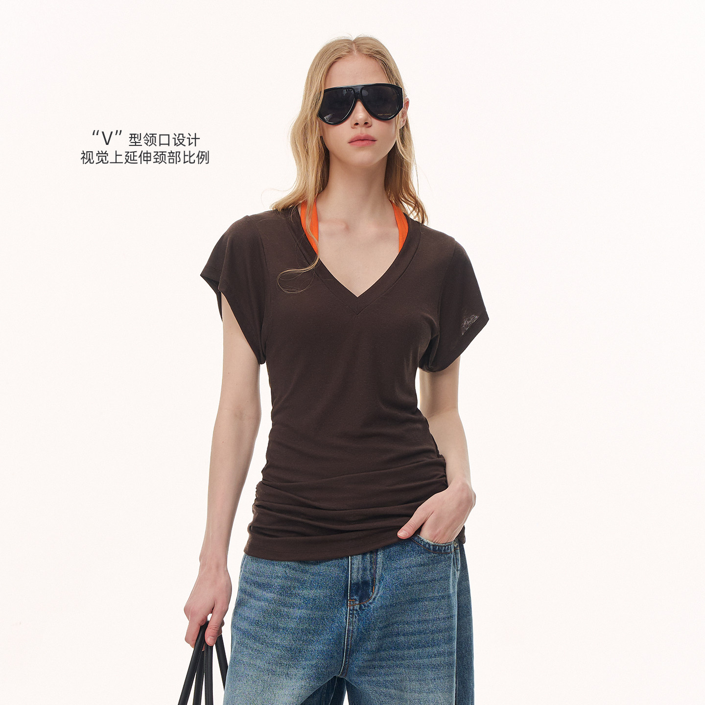 T恤短袖 CLIMAX 罩衫 显瘦中长款 VISION莱赛尔亚麻轻透感V领修身