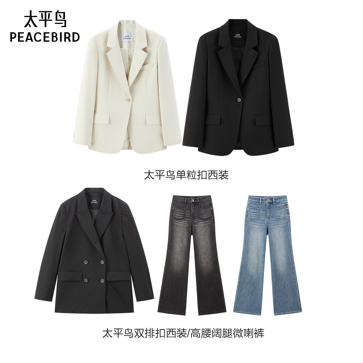 西裤 太平鸟双排扣戗驳领西装 单粒扣西装 达播专属