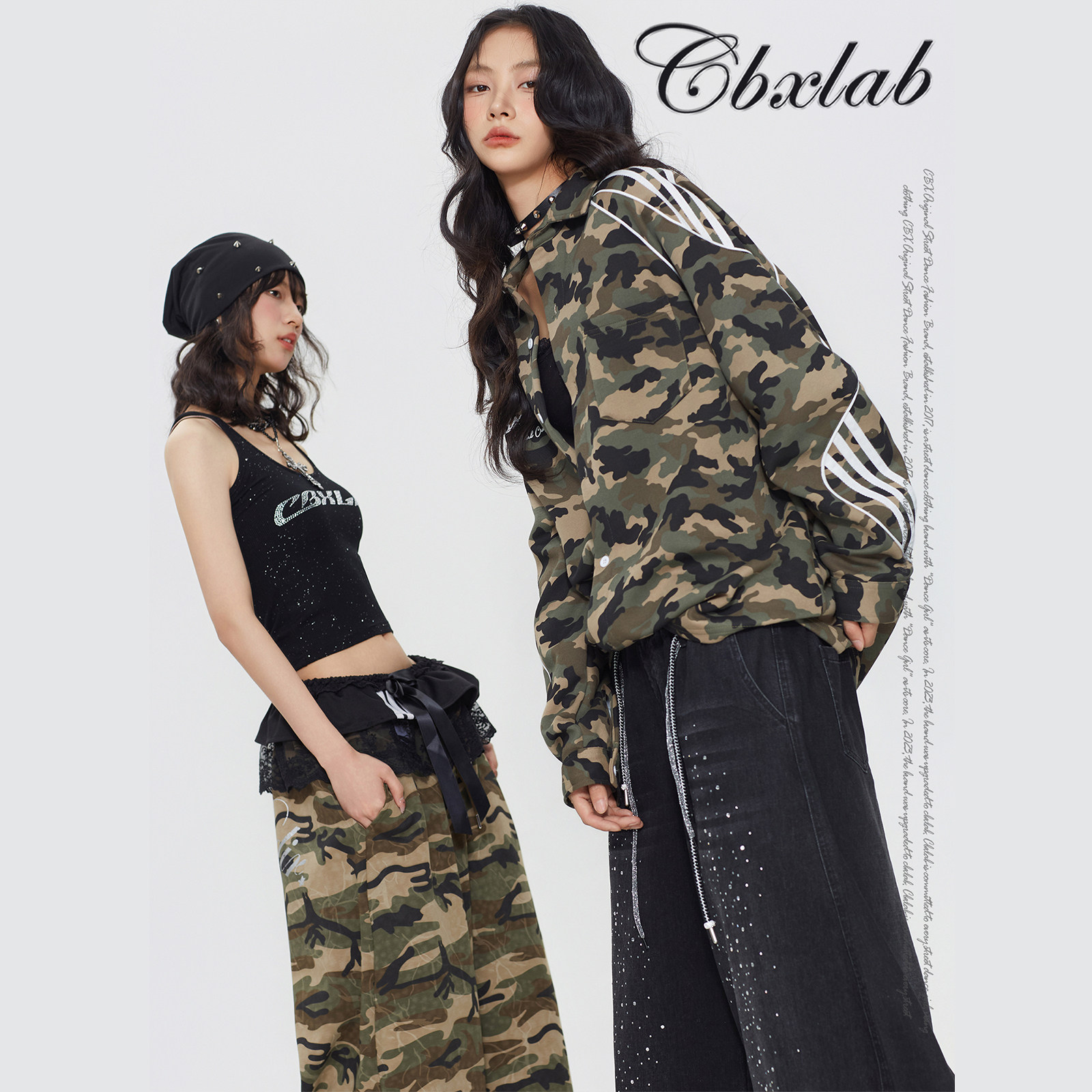 复古辣妹春季 美式 上衣潮 衬衫 CBXLAB街舞潮牌针织迷彩街头嘻哈长袖