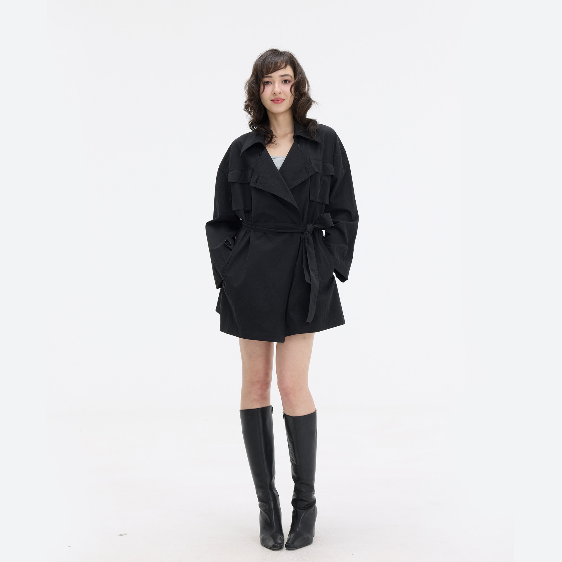 Veryrareme 风衣 黑色翻领短款