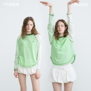 plus 修身 条纹撞色插肩夏季 清爽长袖 T恤女 薄款 riverstone