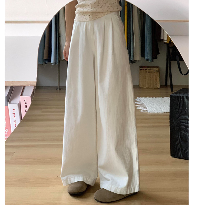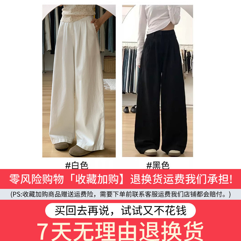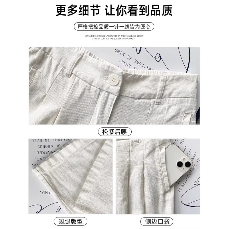 高腰垂感老钱风直筒亚麻苎麻阔腿裤 女春秋2026新款 裤 白色棉麻西装