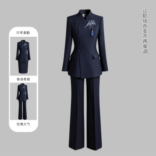 轻奢高级感新中式 女2026新款 国风茶艺师售楼部工作服 套装 职业西装