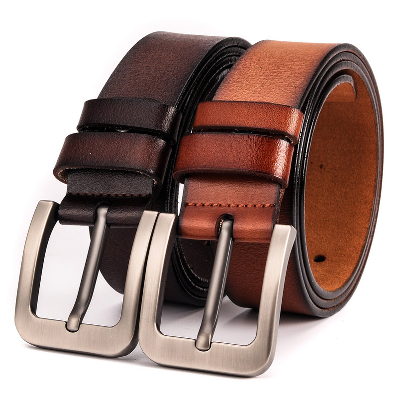 棕色黄棕色扣 带棕扣针眼腰带 牛皮青年针扣色 针眼裤 高档真皮男士