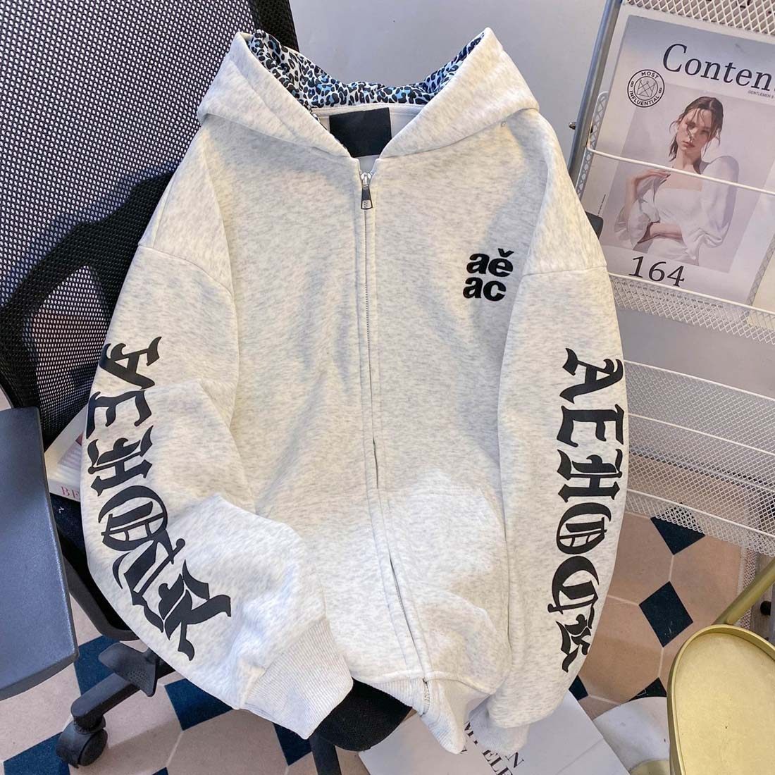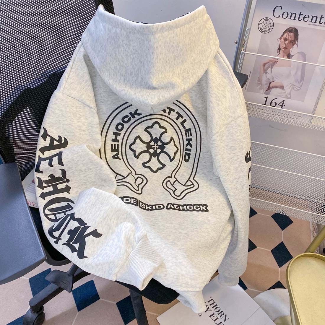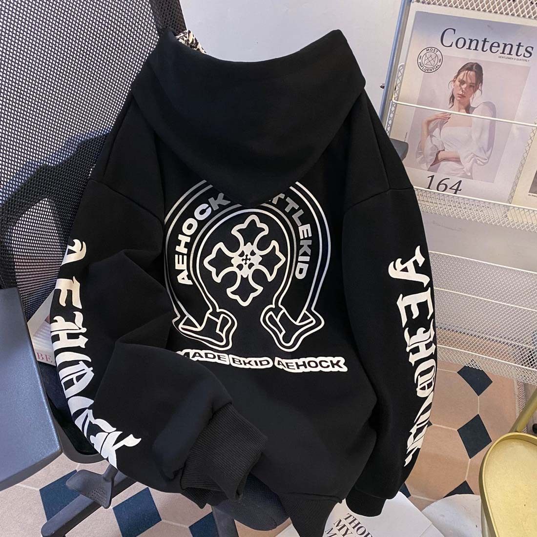 宽松潮牌情侣帽衫 美式 上衣外套 幸运之符连帽卫衣男秋季 CHINISM