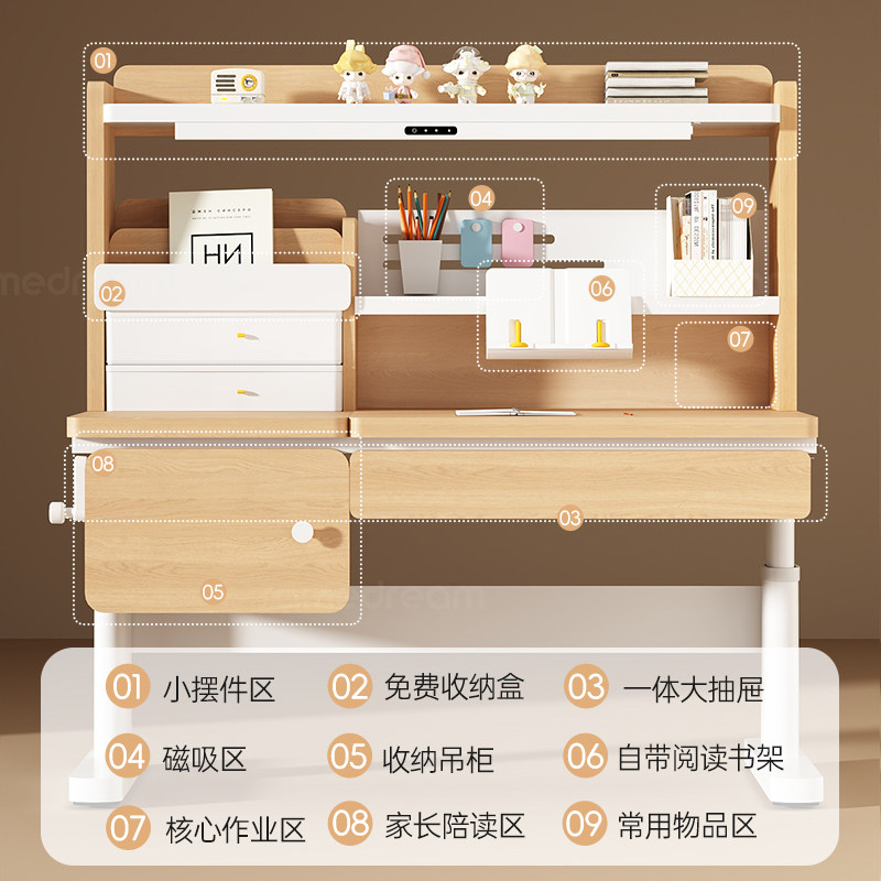 学习桌儿童书桌可升降2025新款 大白桌写字桌 学生家用专用桌椅套装