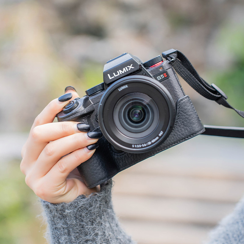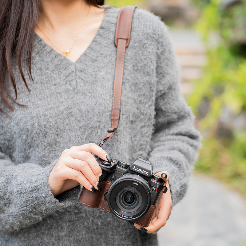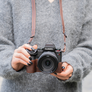 摄侣适用松下s5保护套s9手柄皮套S5m2X相机包S9保护壳s5二代半套S5II底座包真牛皮壳挂绳背带斜跨肩带配件
