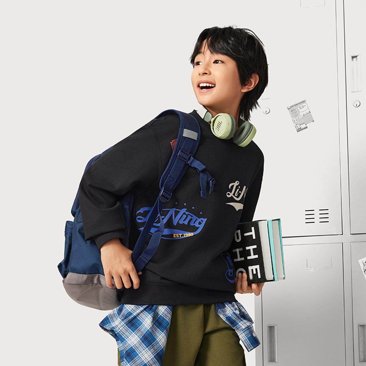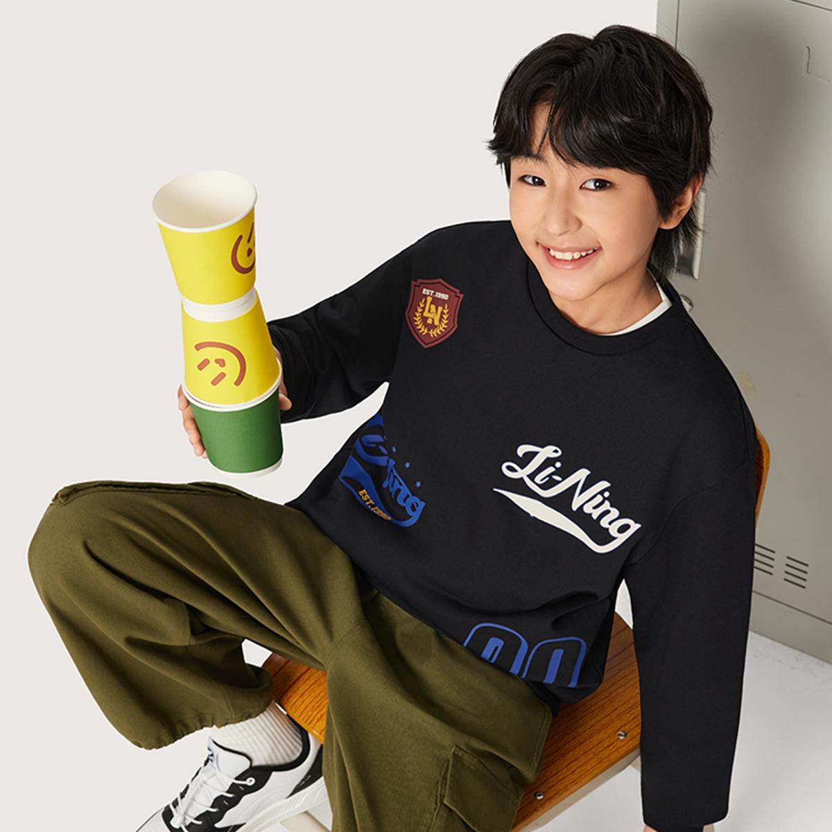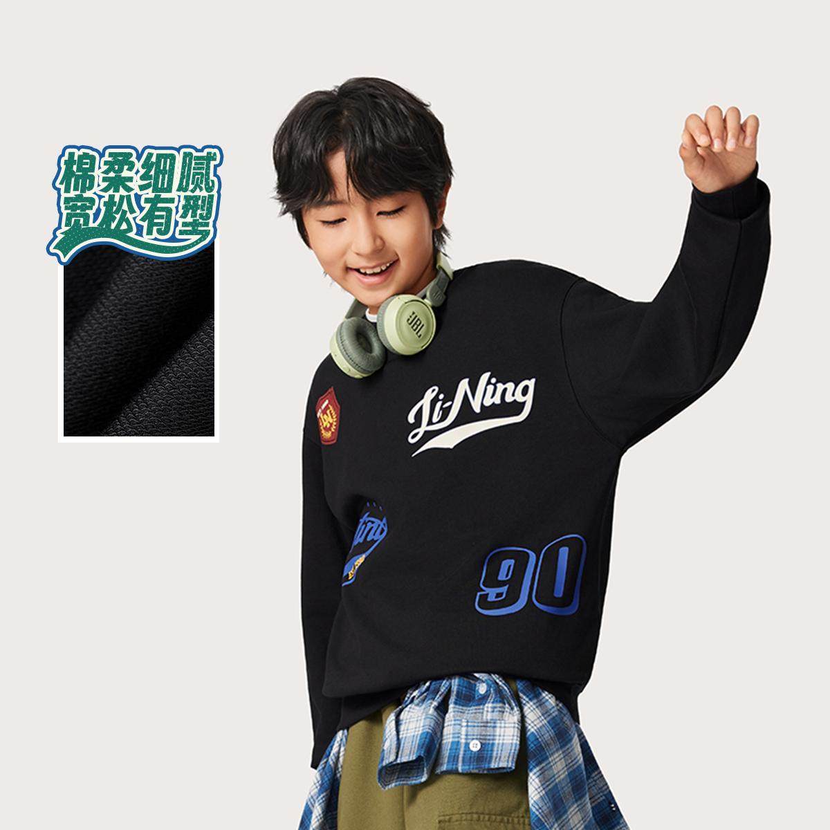 李宁正品 运动生活系列男女大童宽松休闲透气圆领套头卫衣YWDV427