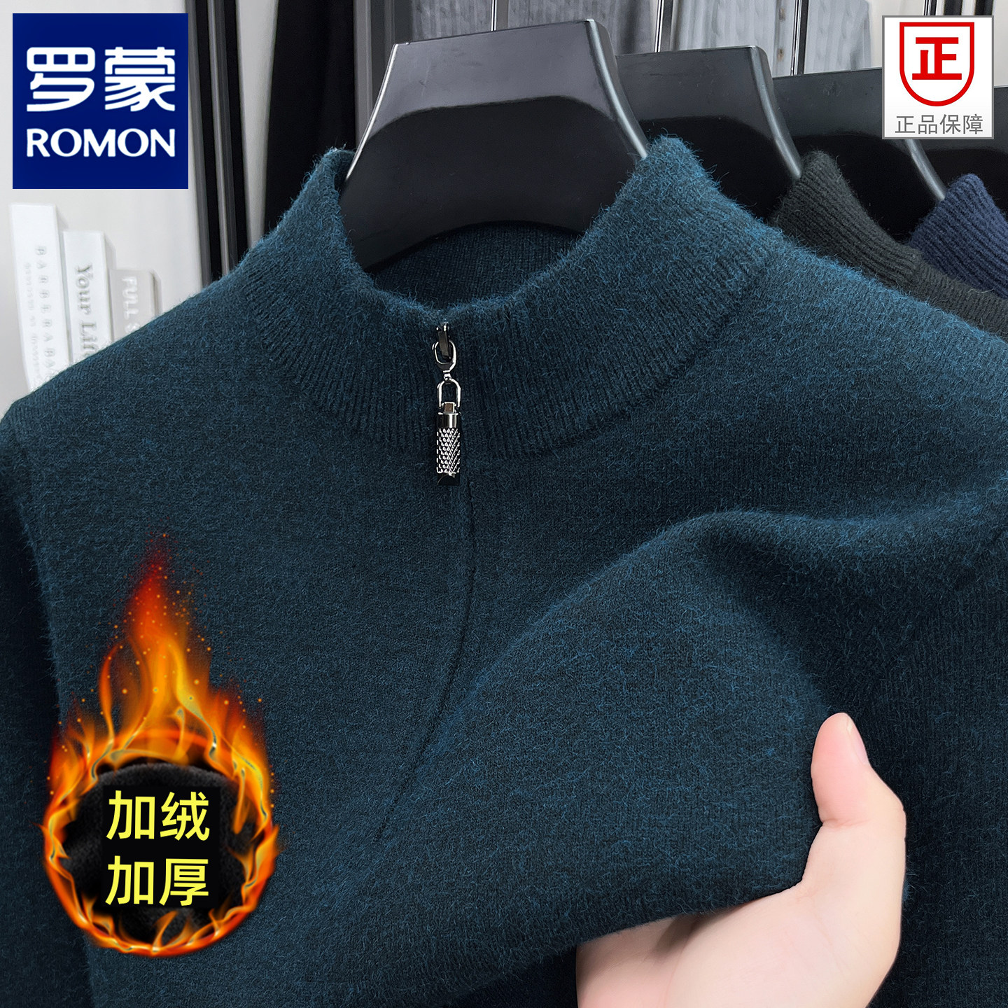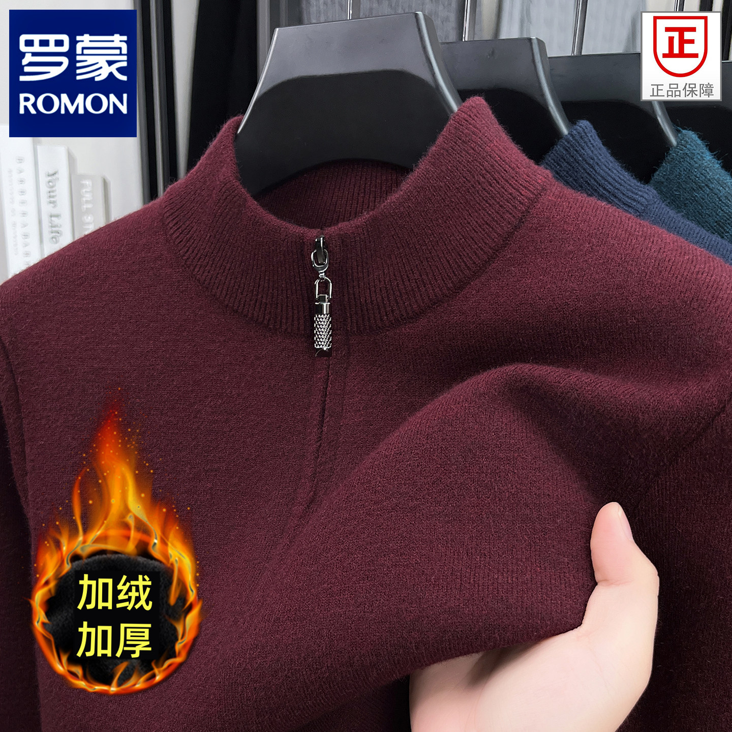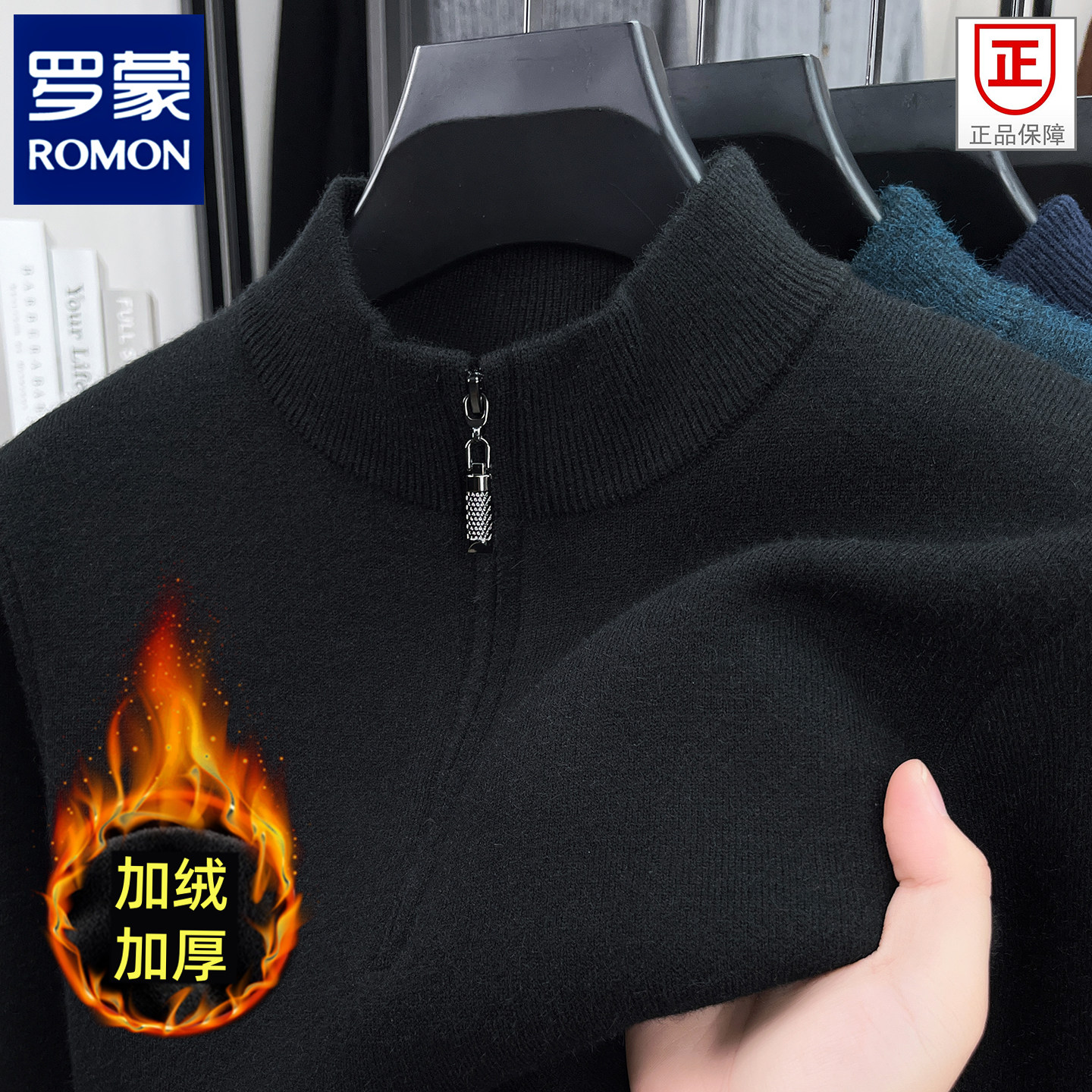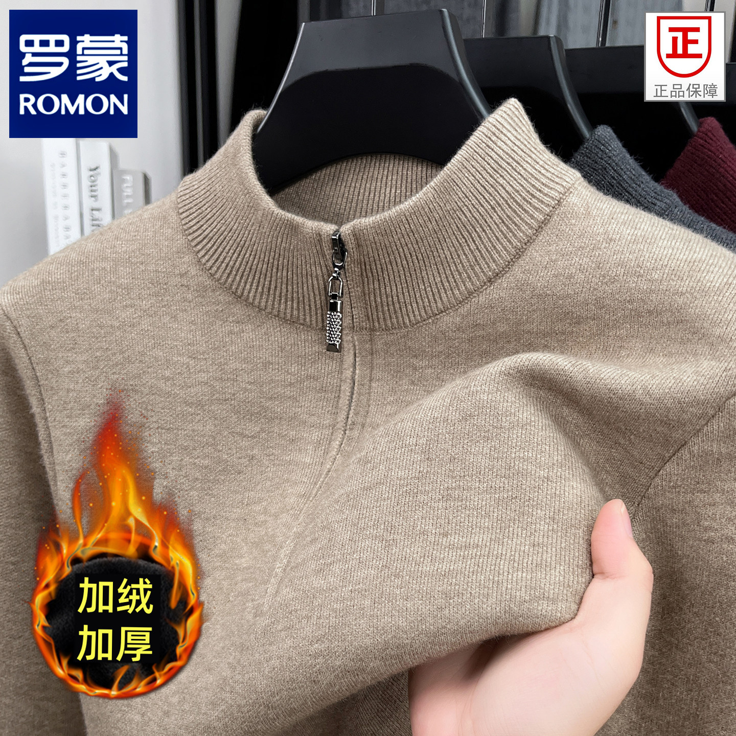 保暖针织打底衫 罗蒙半高领拉链男士 新款 男冬季 毛衣加绒加厚羊毛衫
