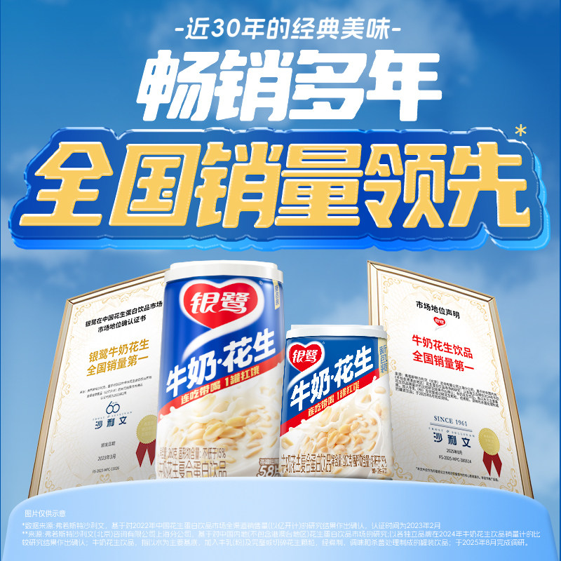 银鹭牛奶花生饮料整箱网红早餐奶休闲食品200g 活动 3罐装
