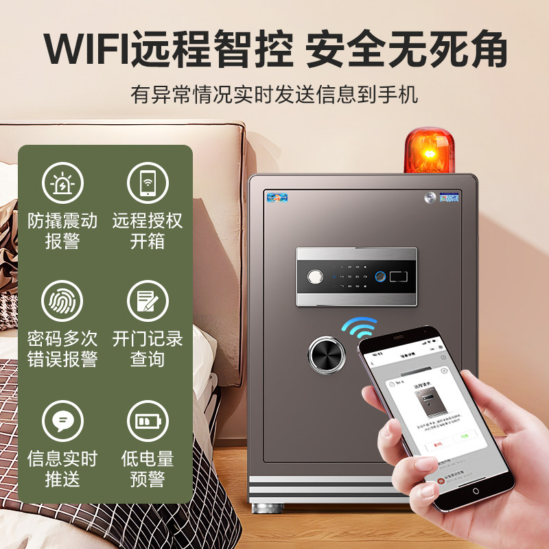 60cm全钢保险箱小型迷你防盗隐形保管箱床头2025新款 虎霸家用办公保险柜WIFI报警家庭入墙指纹密码
