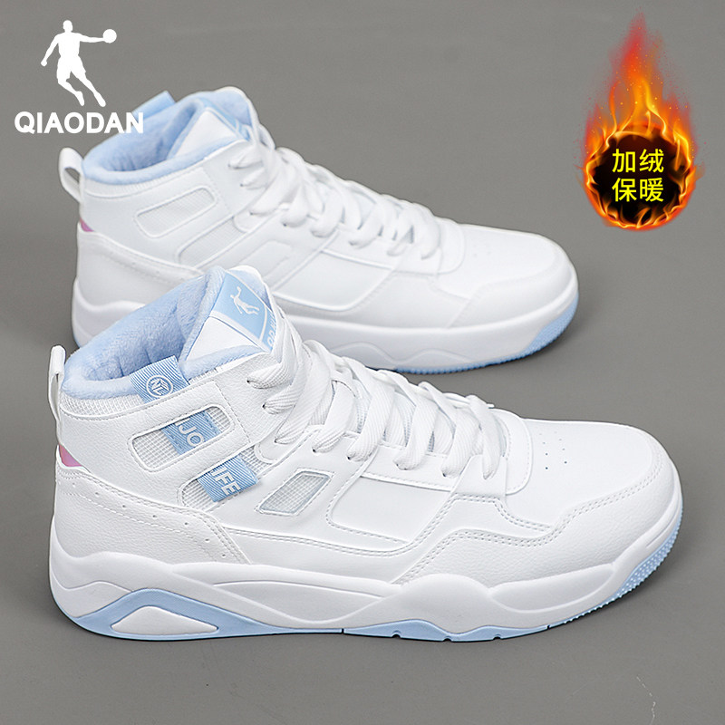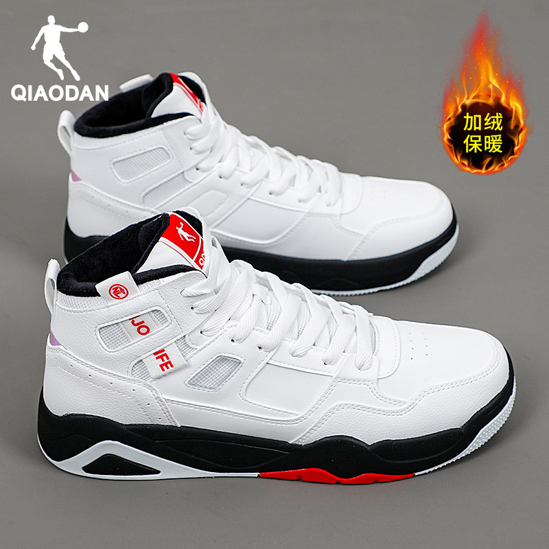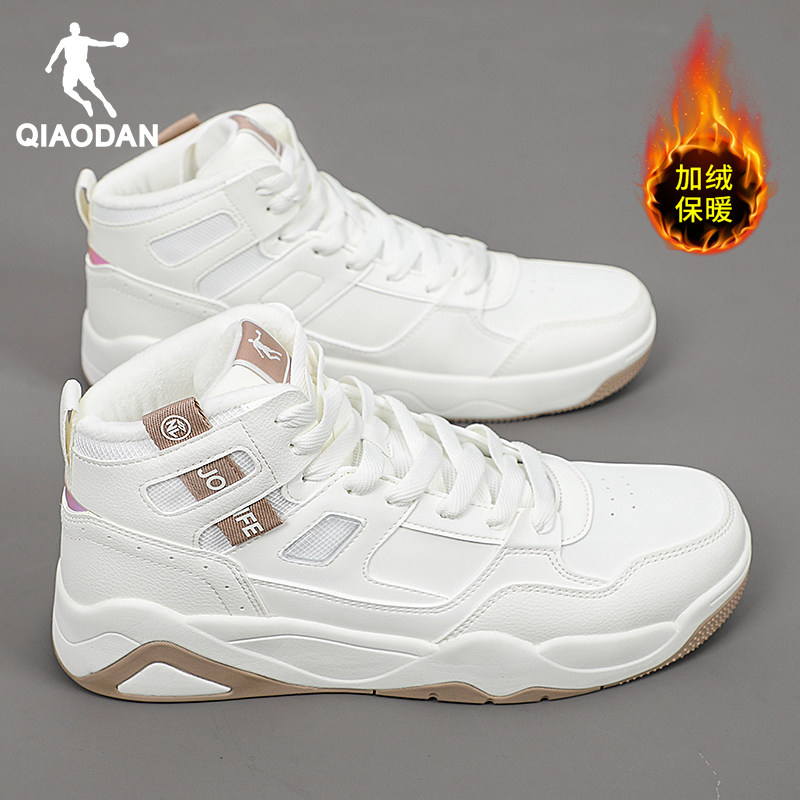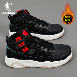 加绒高帮板鞋 子运动鞋 2025秋冬季 保暖休闲皮面防水鞋 新款 乔丹男鞋