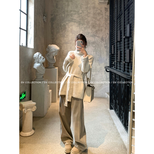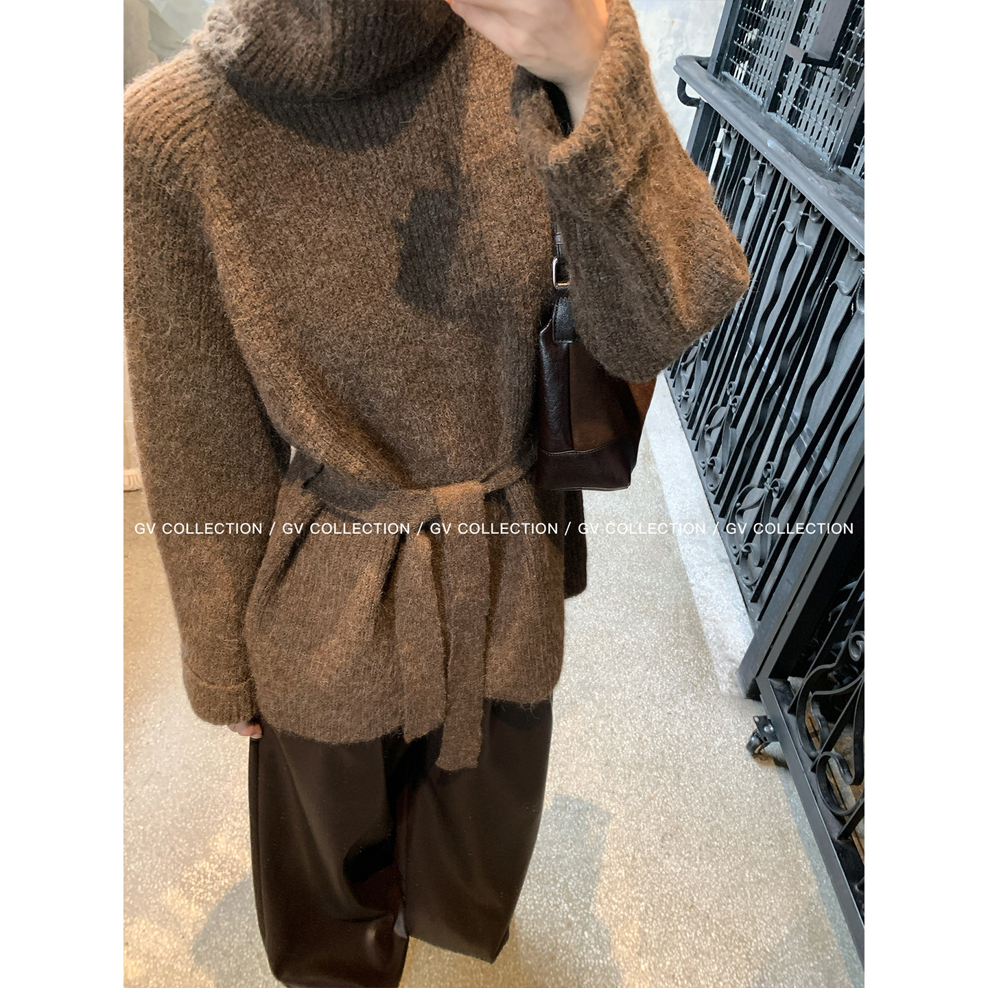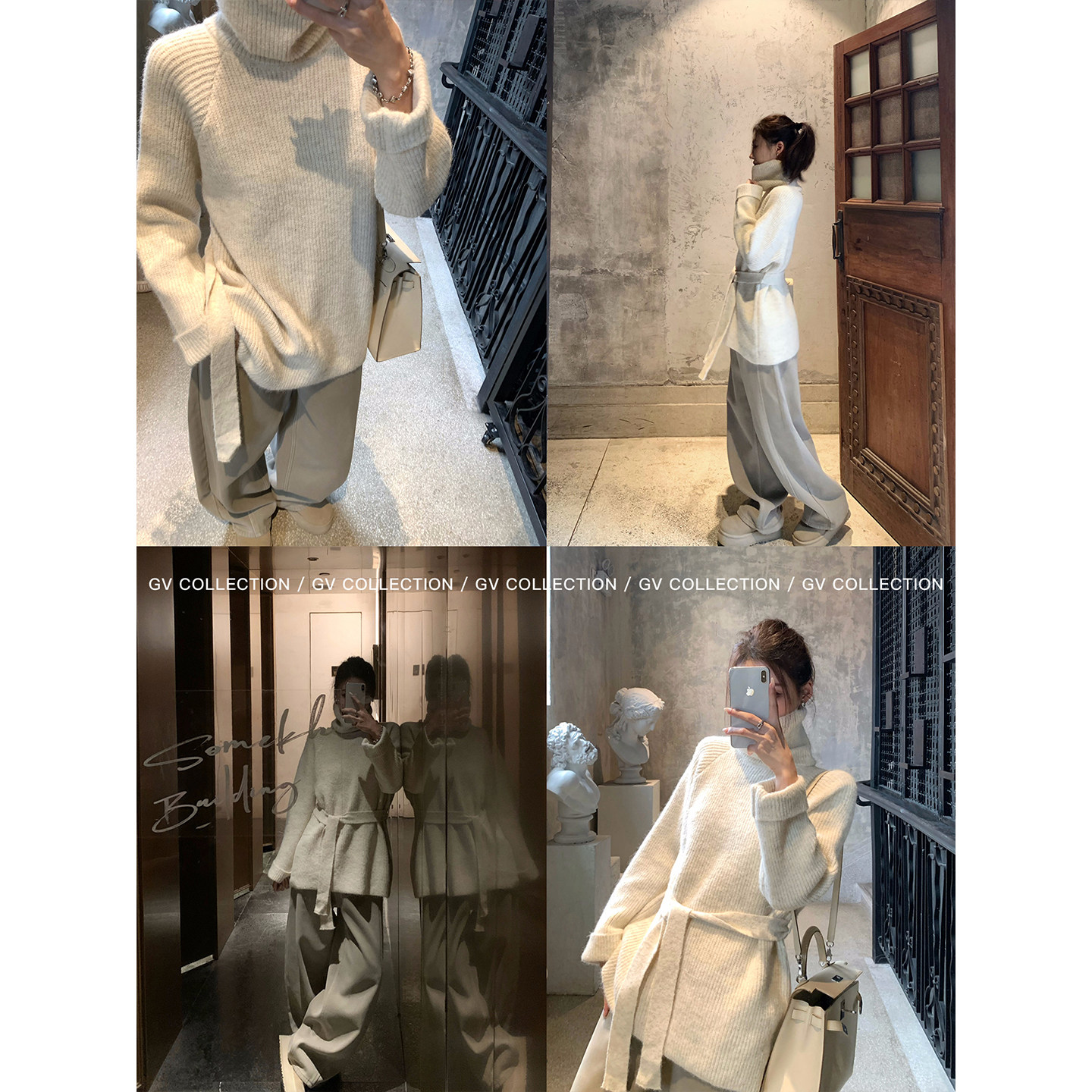 上衣女 羊毛高领腰带收腰毛衣上衣秋冬保暖新款 GV大白哥 老钱主线