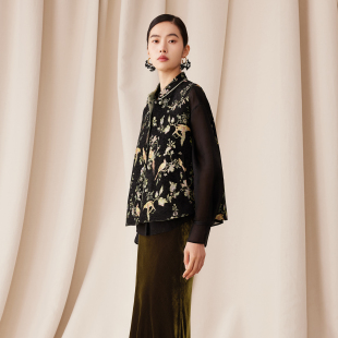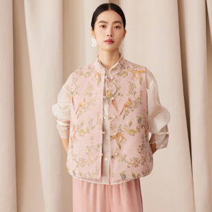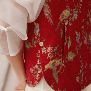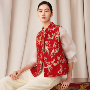 双面穿国风坎肩 新年雪尼尔织金提花马甲女新中式 如意连云 炙茹