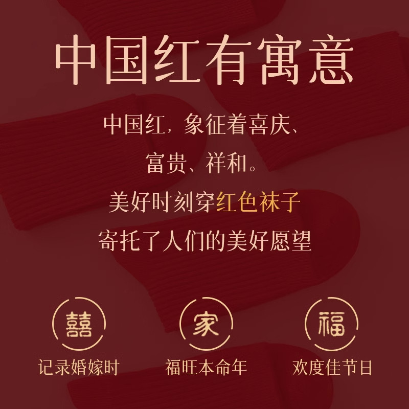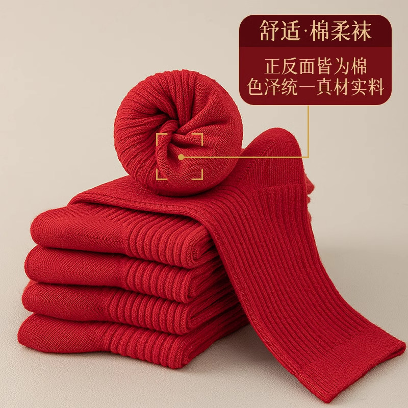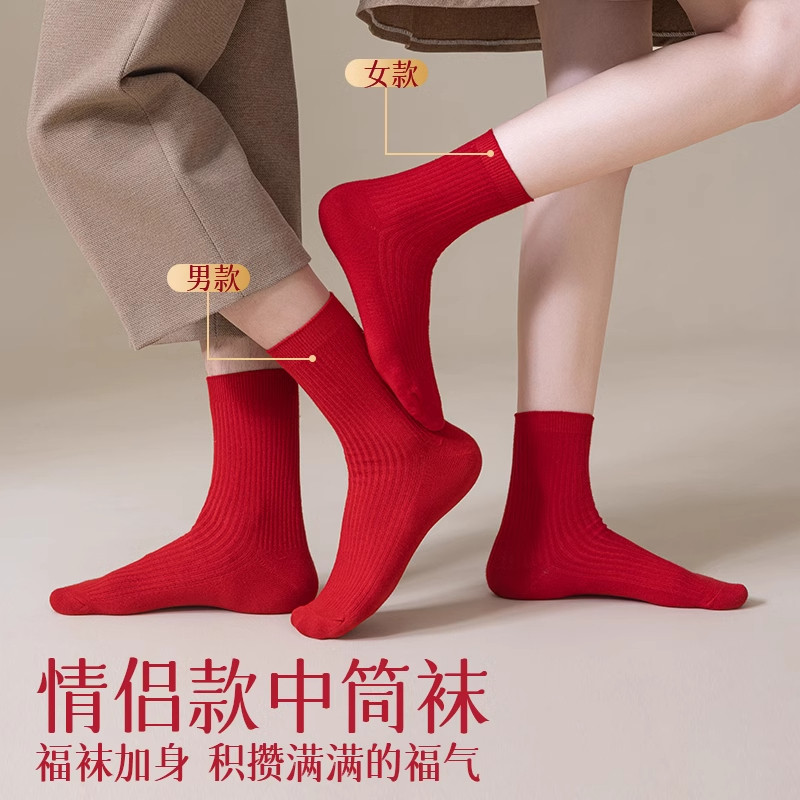 本命年红袜子男女秋冬季 新疆棉中筒袜情侣结婚新年袜2026马年长袜