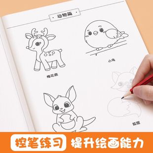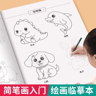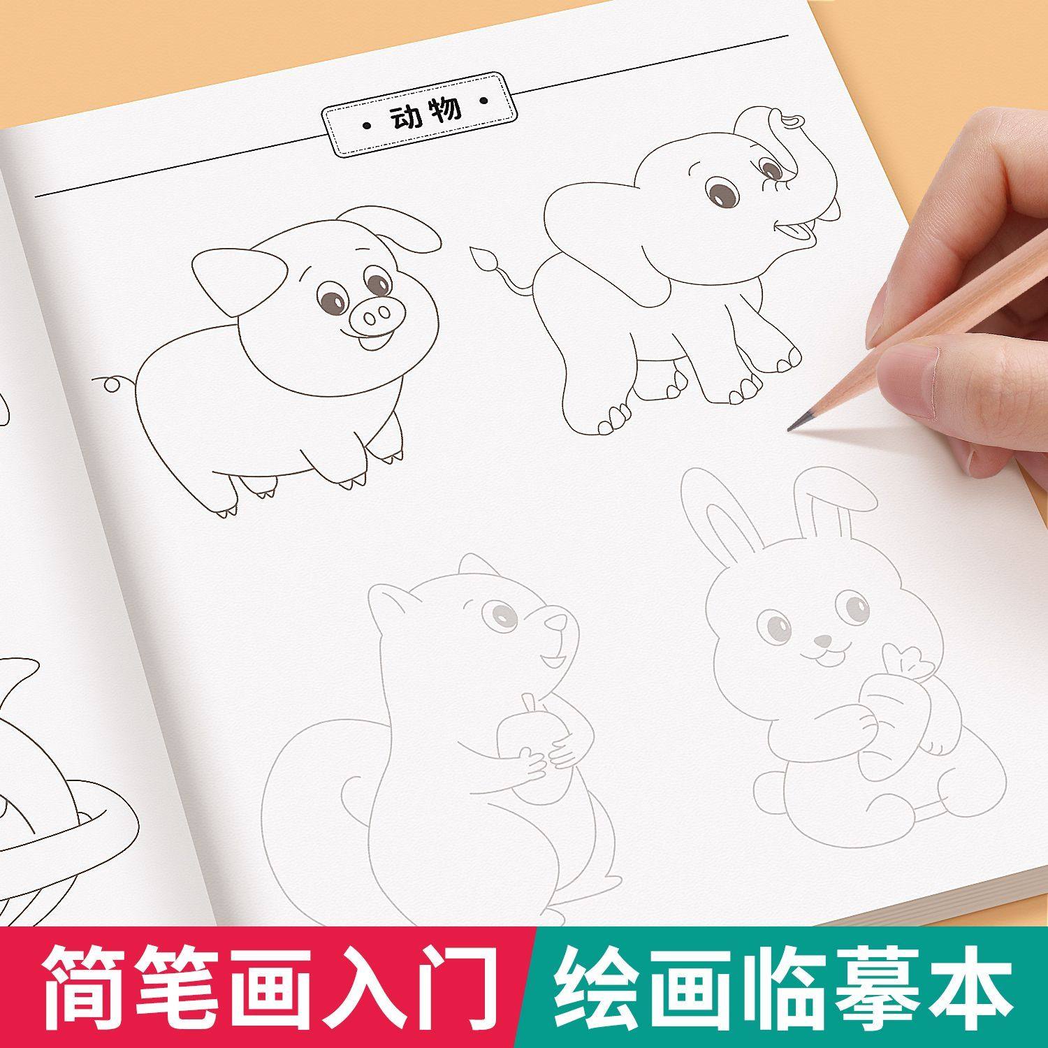 儿童简笔画描摹本画画描绘本幼儿园素描临摹画册漫画人物手绘线描画画本入门自学零基础启蒙教材控笔训练涂色