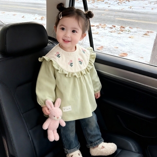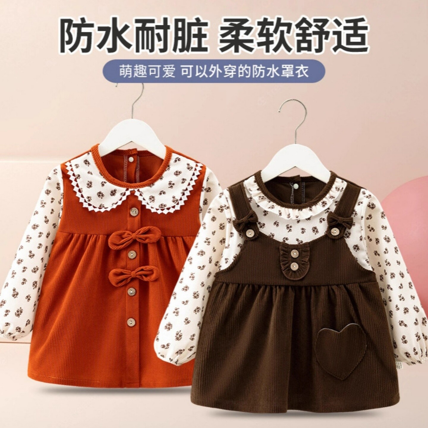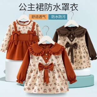 罩衣女宝宝外穿秋冬吃饭防水防脏反穿衣洋气好看儿童围裙兜公主裙