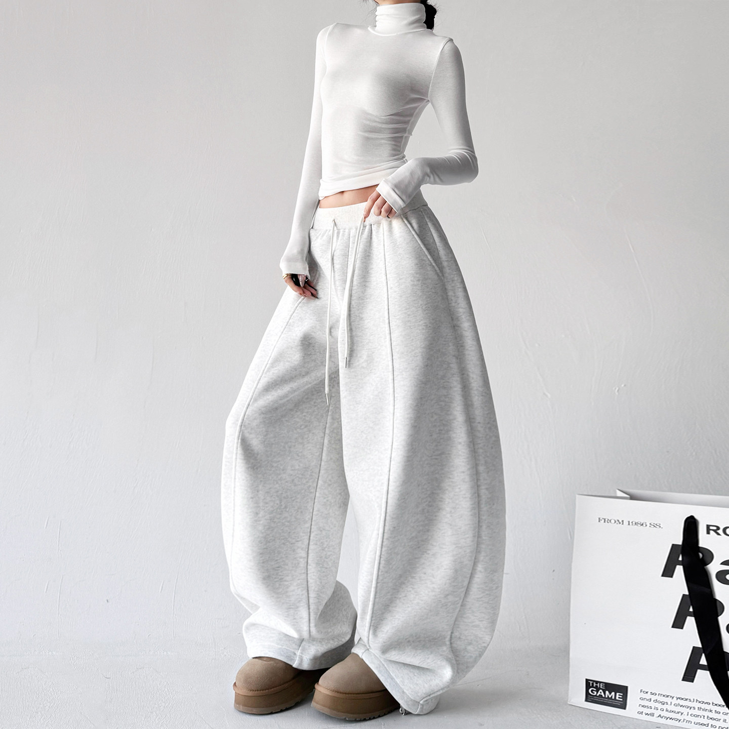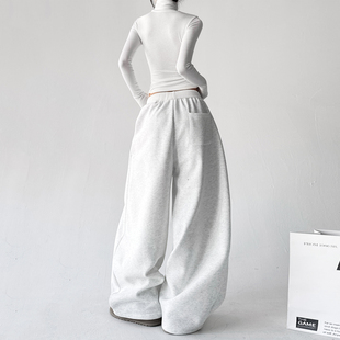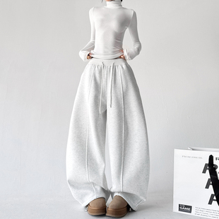 运动休闲抽绳加绒加厚阔腿宽松弯刀卫裤 韩版 子 2025新款 超火冬季