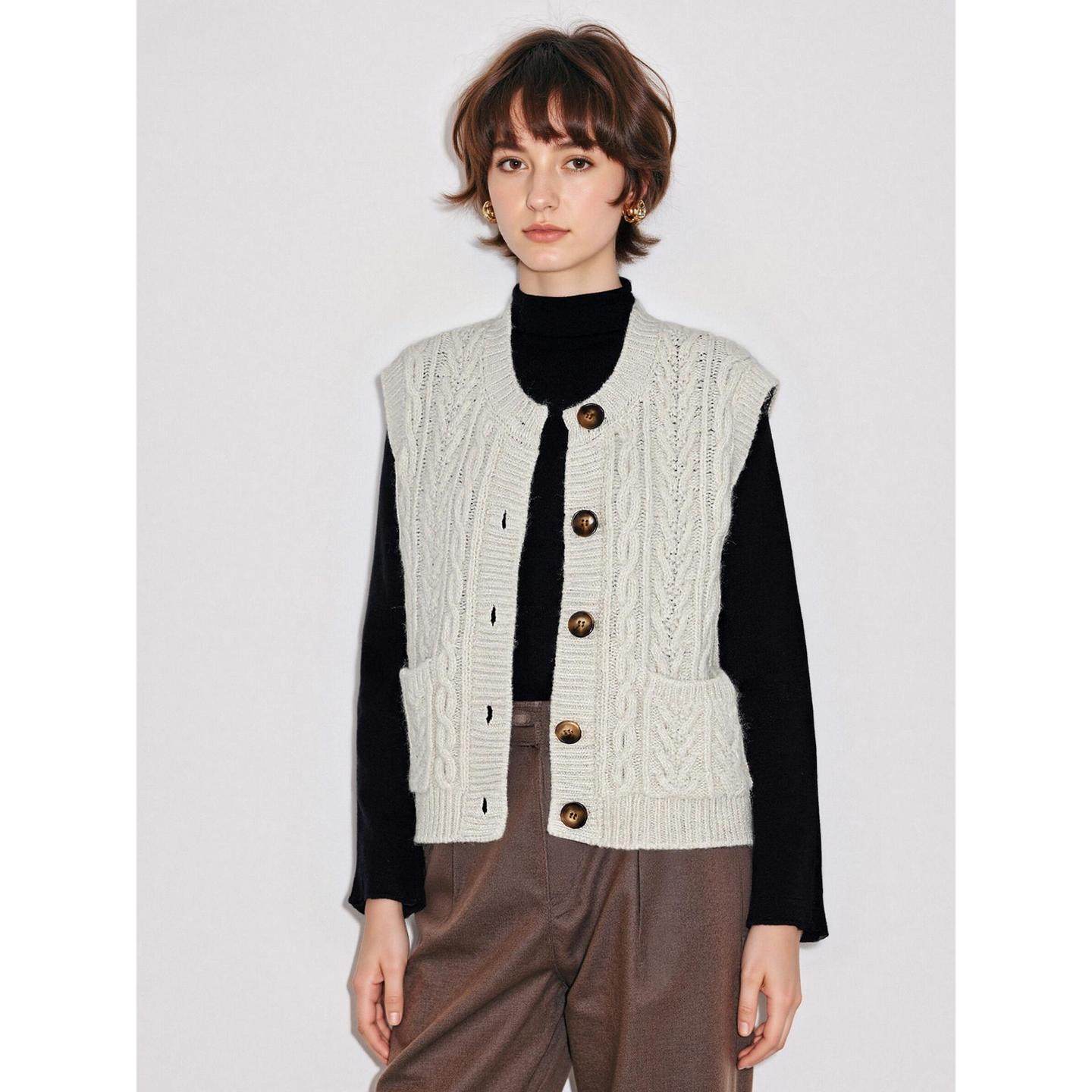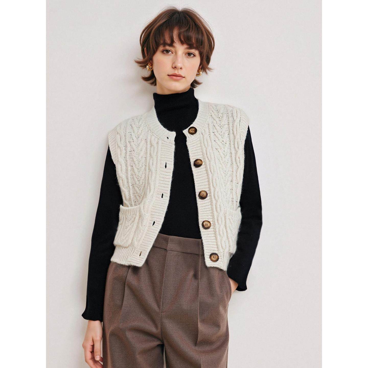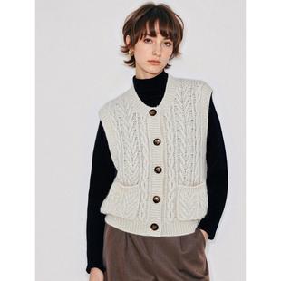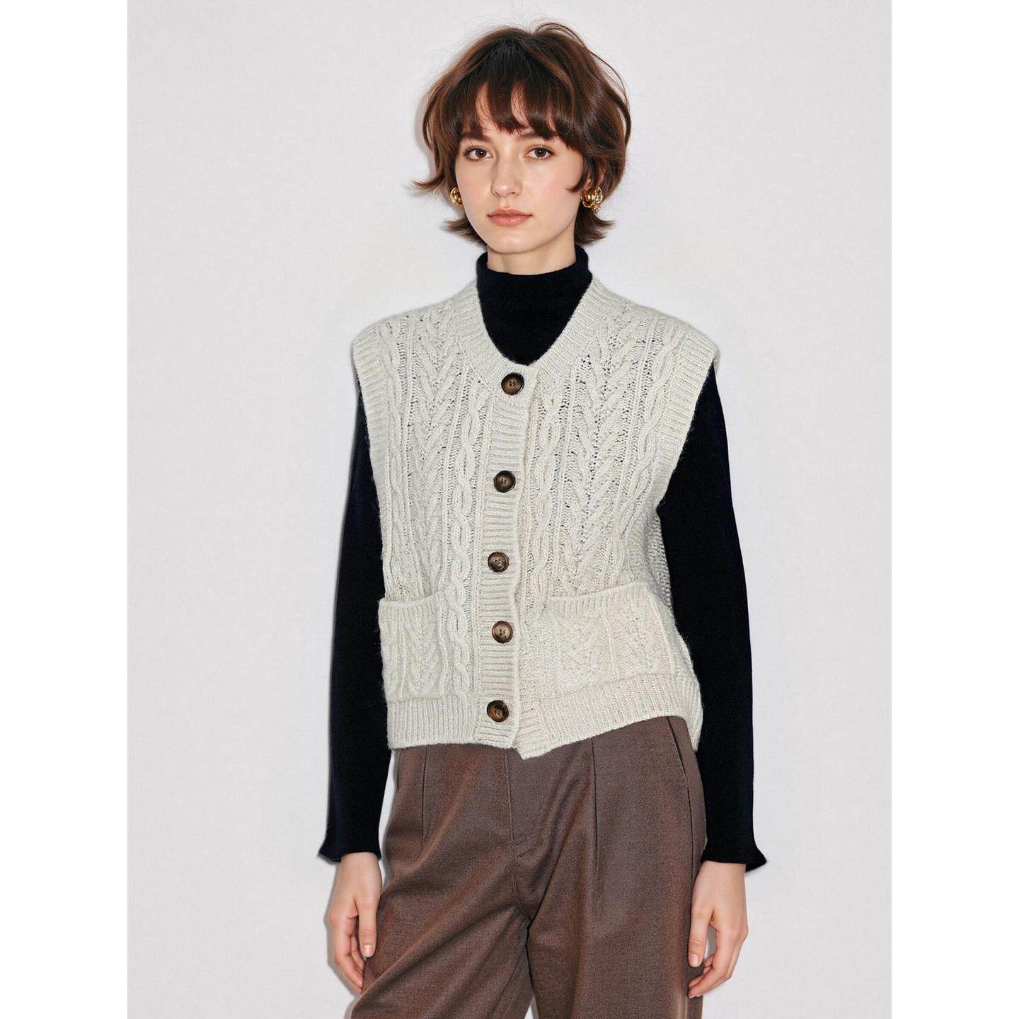 Basic 百家好米色麻花羊绒马甲女冬高级感叠穿羊毛针织背心 House