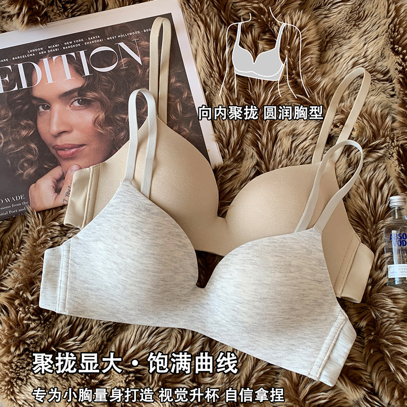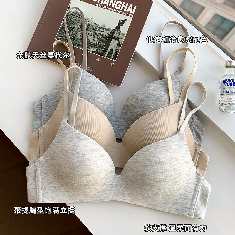天丝莫代尔小胸聚拢内衣女舒适无痕深V无钢圈收副乳防下垂文胸罩