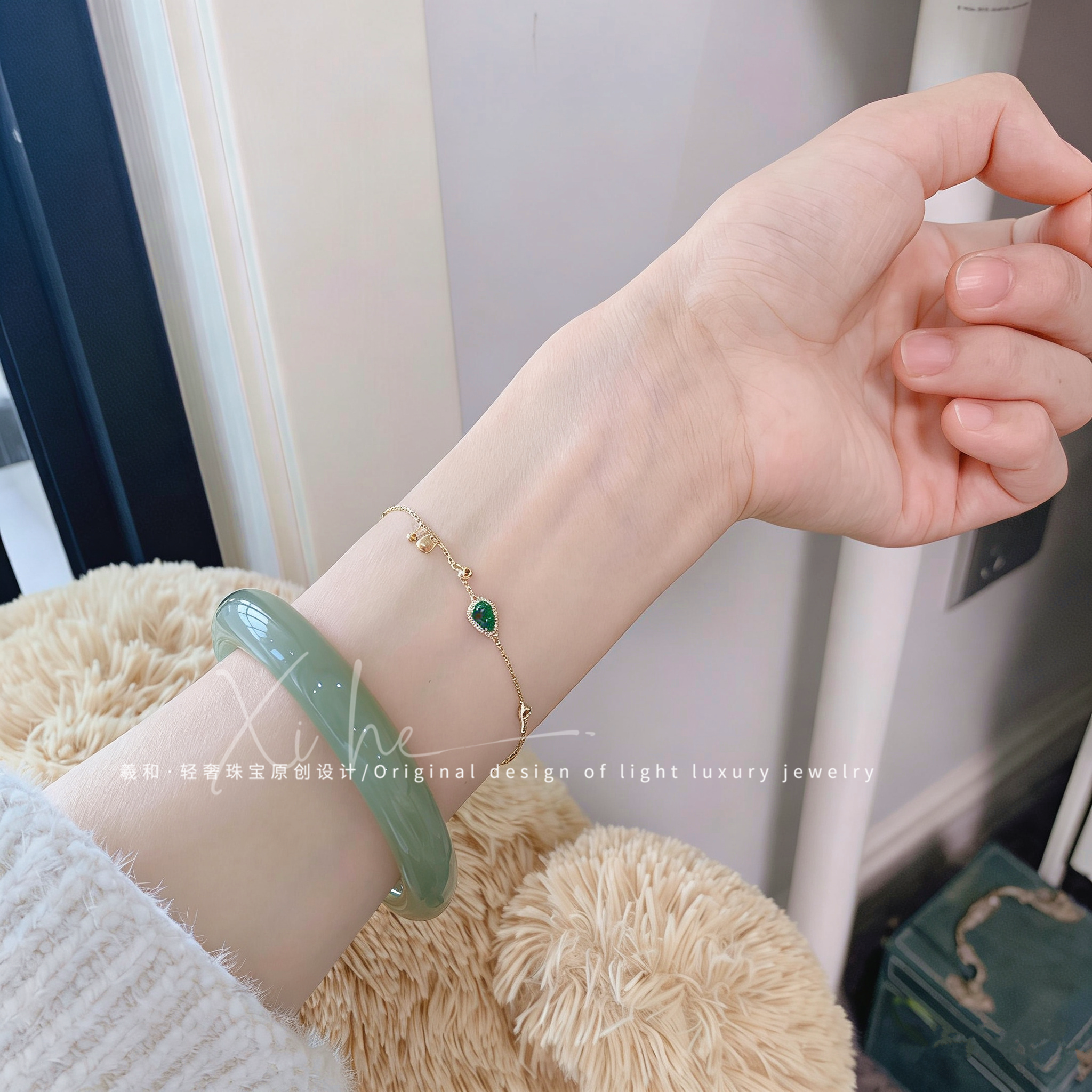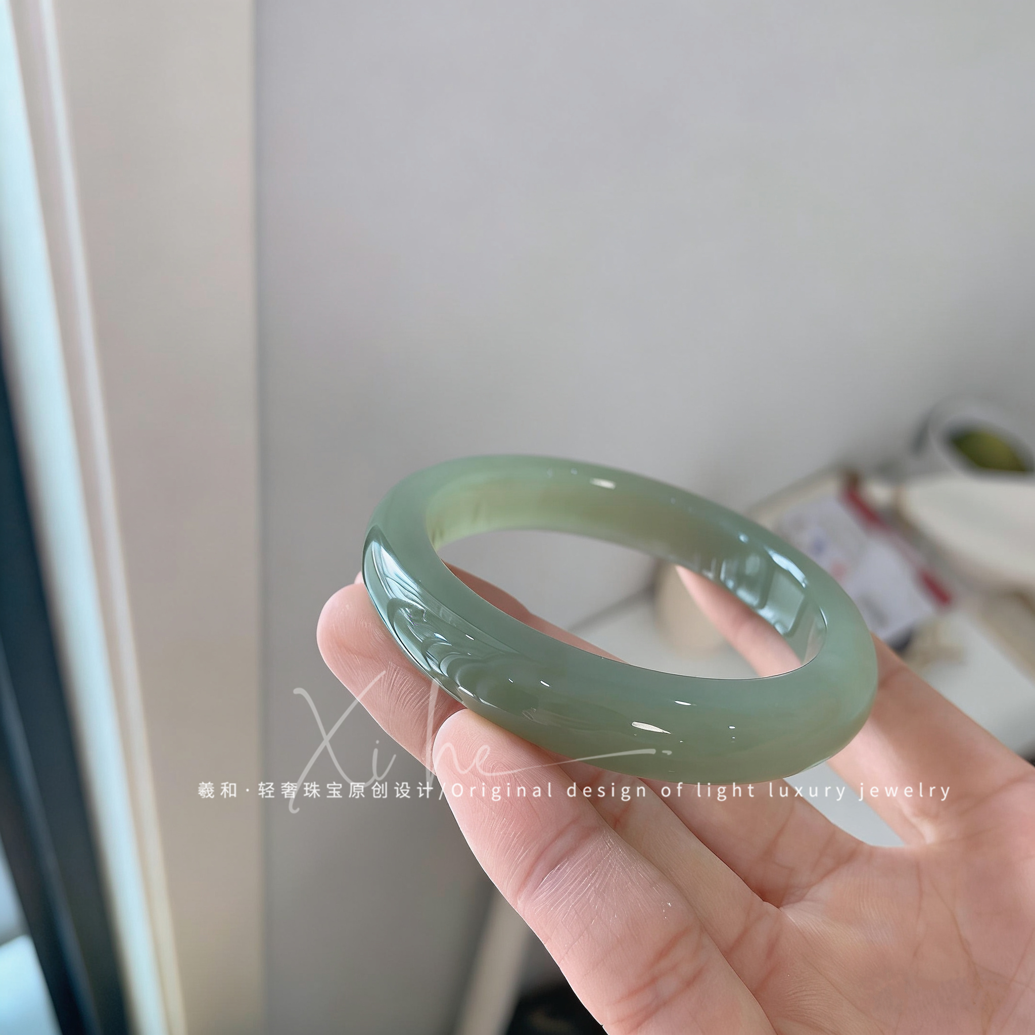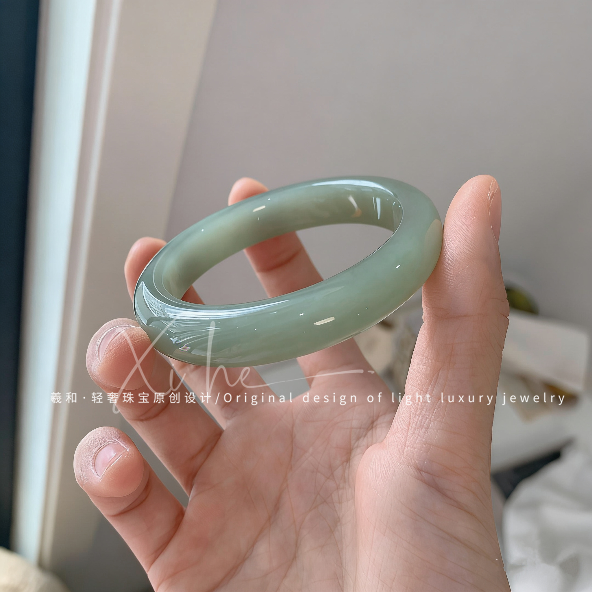 纯天然玉手镯女士年轻款 冰种晴水湖水绿和田玉平替新疆东陵玉镯子