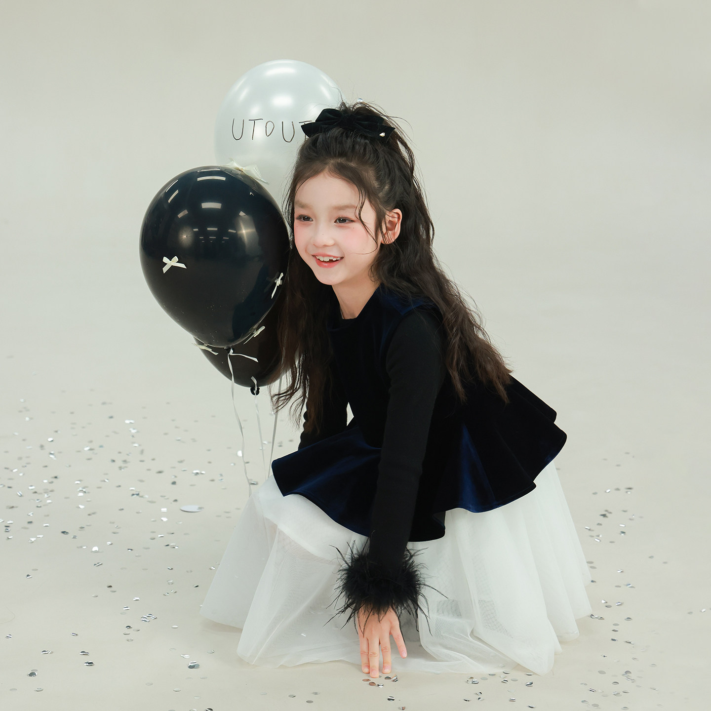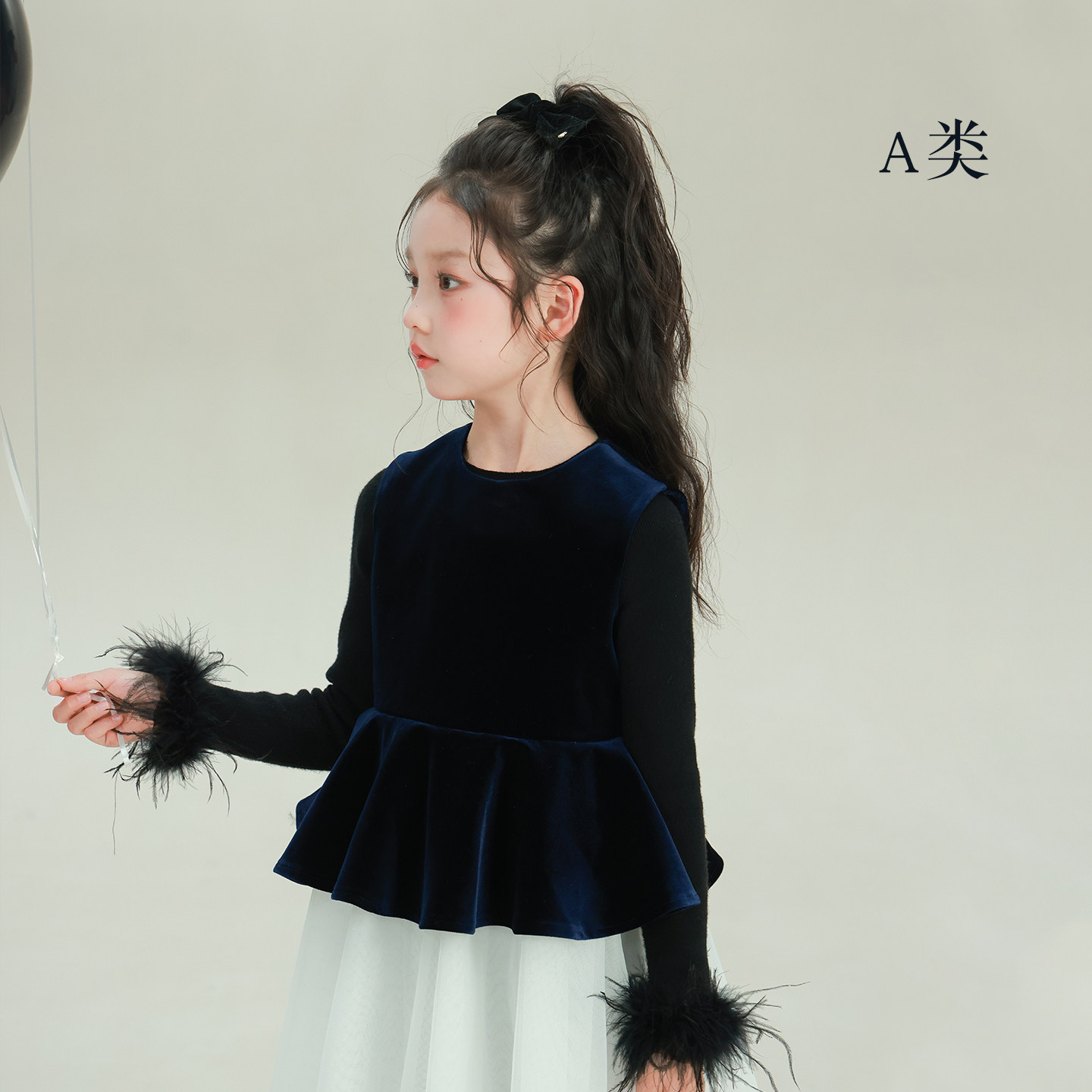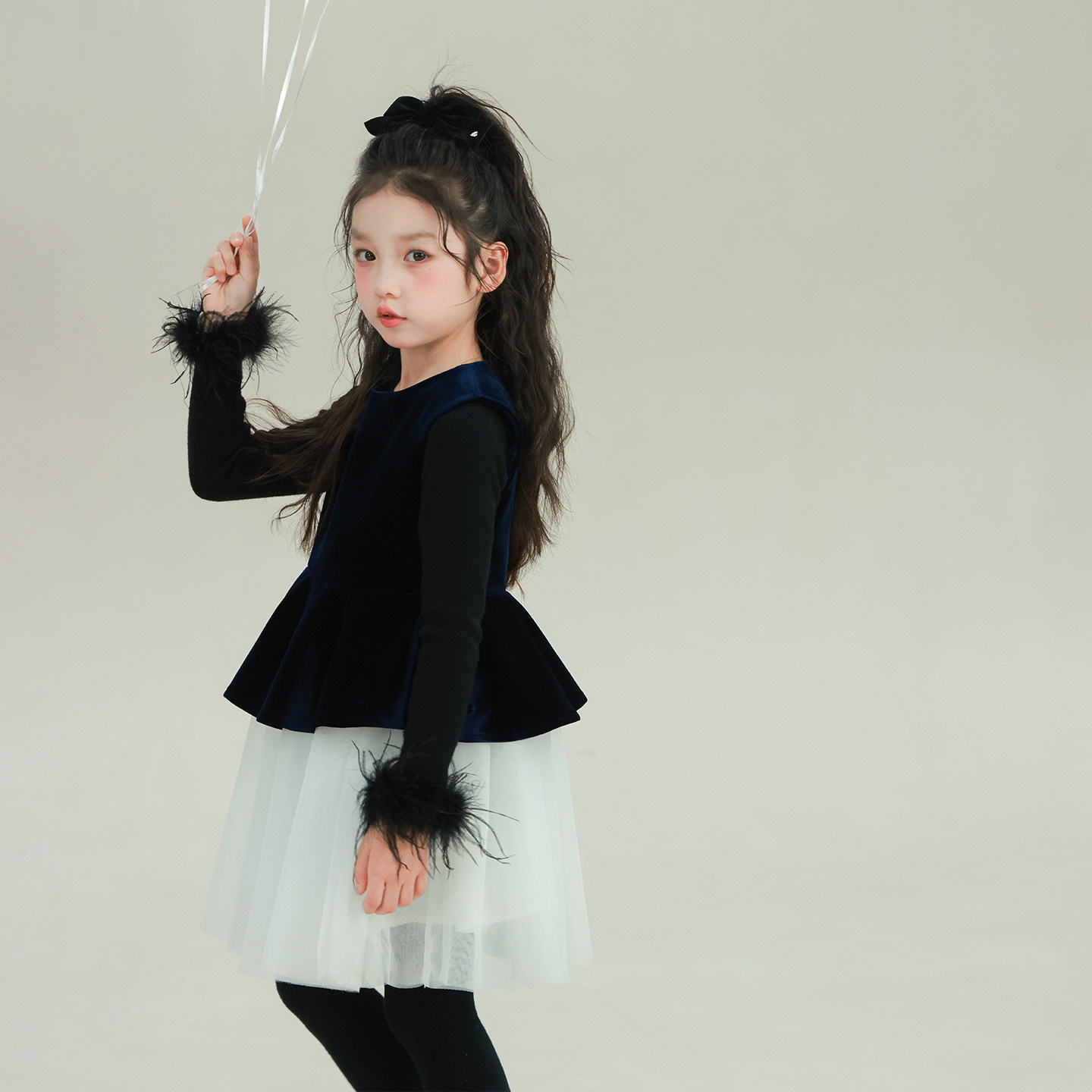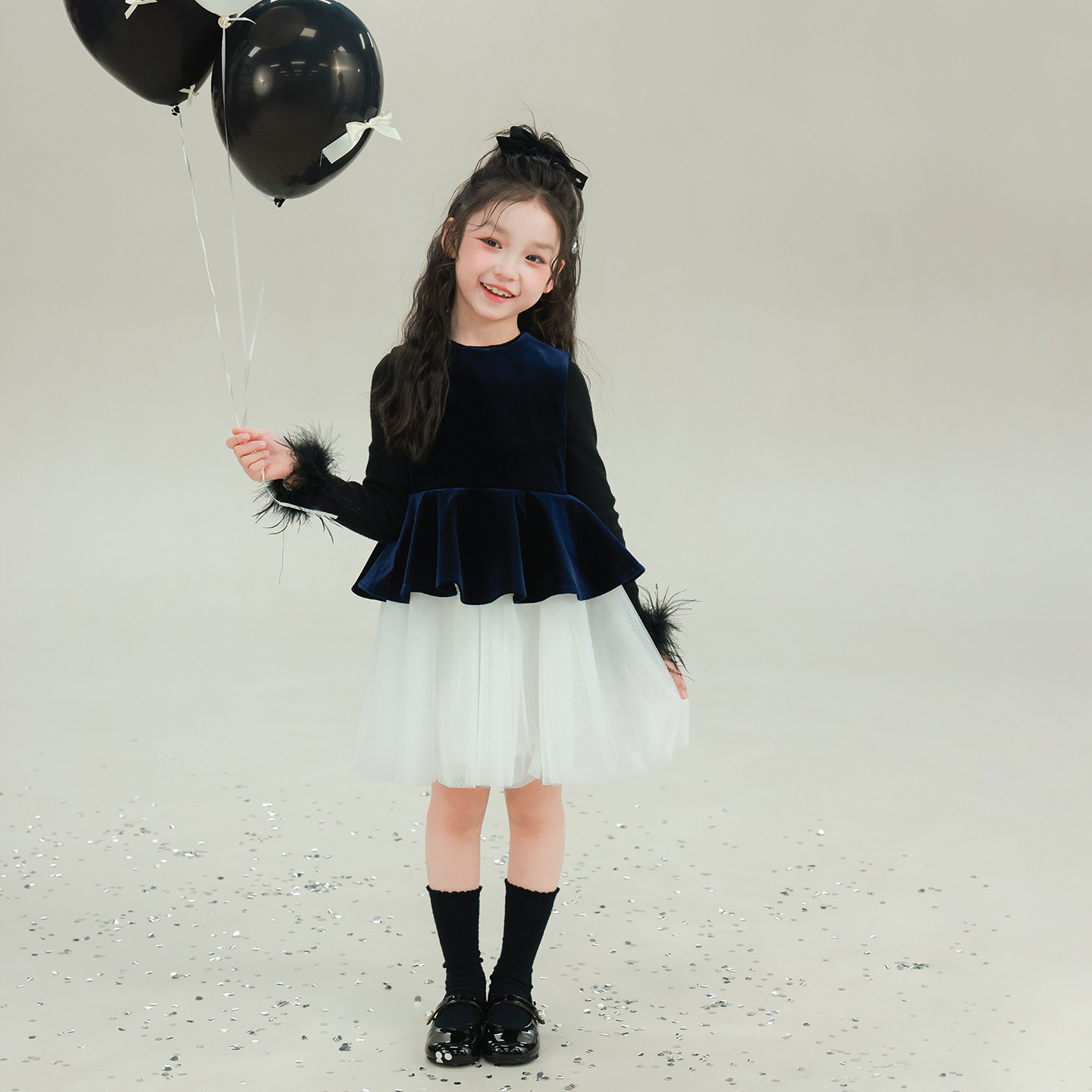 大耳象女童丝绒网纱公主裙冬季 宝儿蓬蓬气质礼服连衣裙子 新款