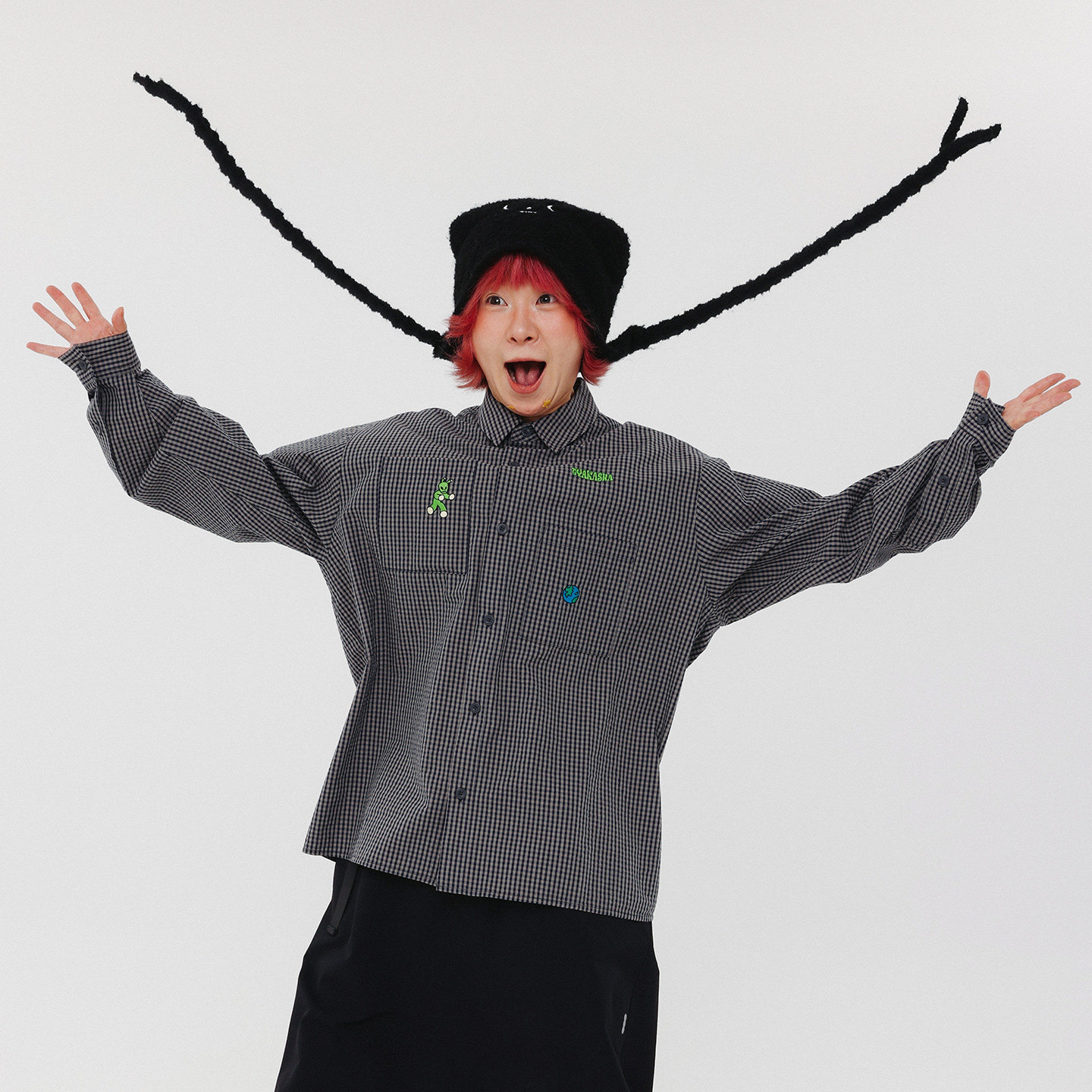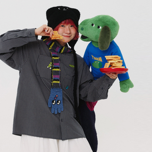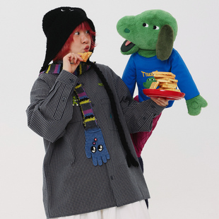 格子休闲衬衫 TYAKASHA塔卡沙男女情侣款 深灰色衬衫 2025新款 衬衫
