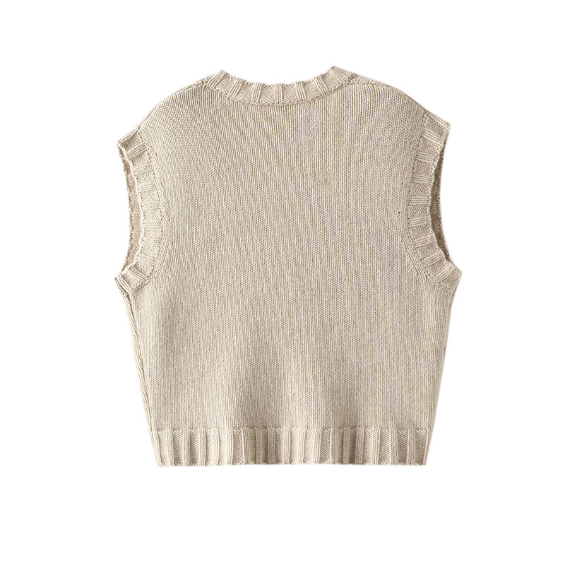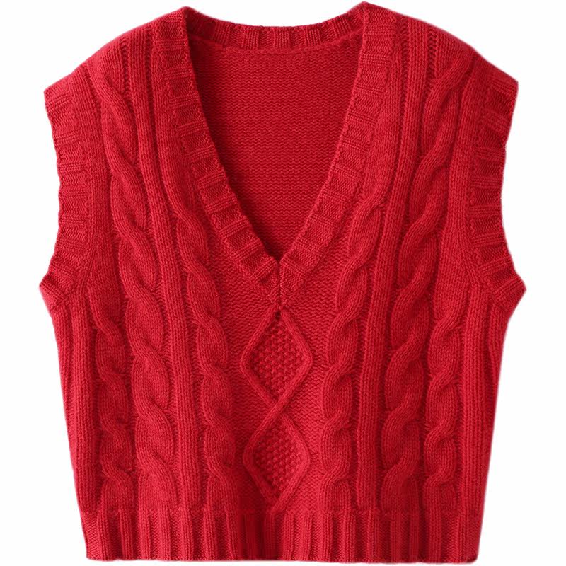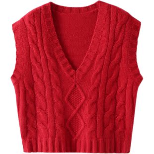 官方正品 针织马甲背心女外穿加厚宽松坎肩V领 100%纯山羊绒衫