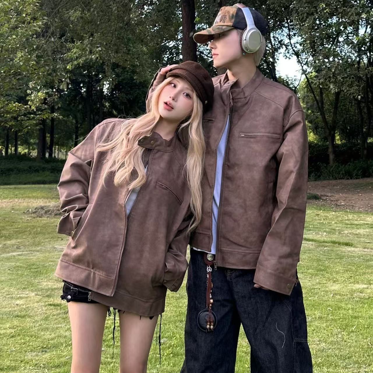 bosie伯喜2025年秋季 复古做旧水洗pu皮衣外套男情侣夹克百搭 新款