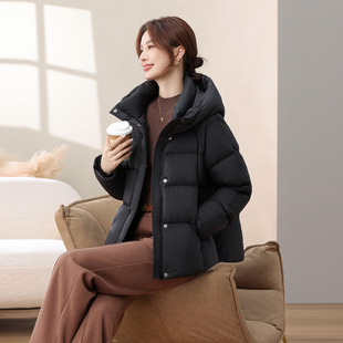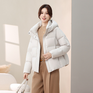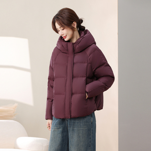 雪中飞2025冬新款 龟背羽绒服连帽简约基础美拉德柔软F 女士短款