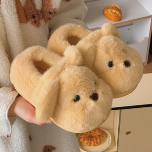 假日 外穿防滑厚底居家保暖棉鞋 可爱米菲兔包跟加绒棉拖鞋 女秋冬季