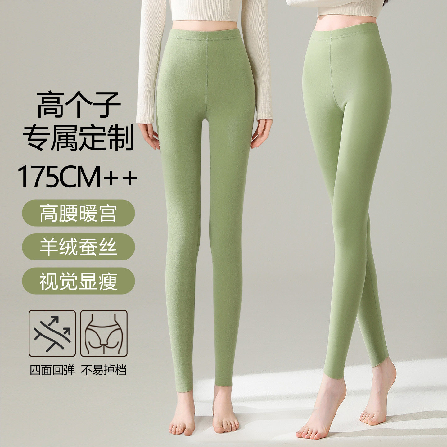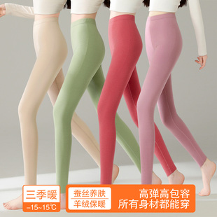 踩脚收腹保暖棉裤 秋冬外穿加绒连袜加厚羊绒秋裤 女薄款 高腰打底裤