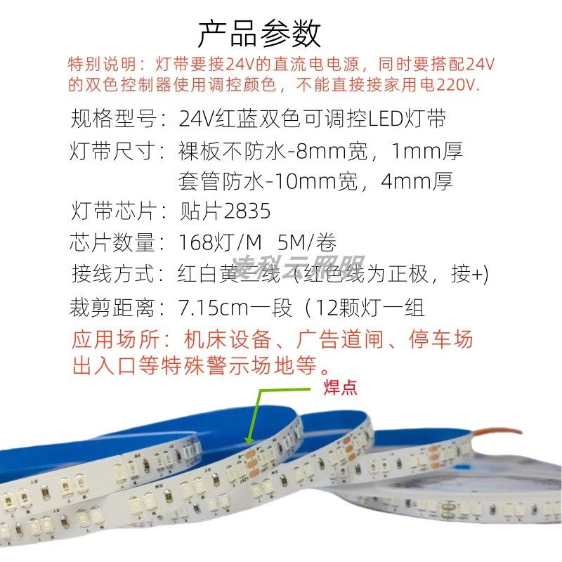 彩光灯带24V2835不防水红蓝双色LED灯带红光 蓝光机械道闸LED灯条