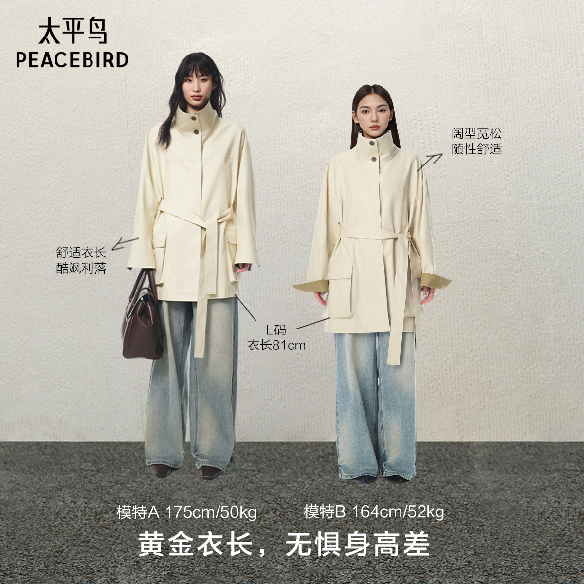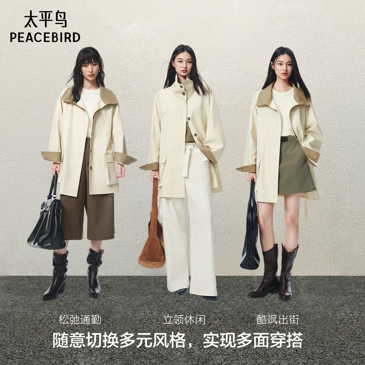 太平鸟人生风衣外套女25商场卡其色A1BEF3329