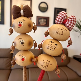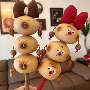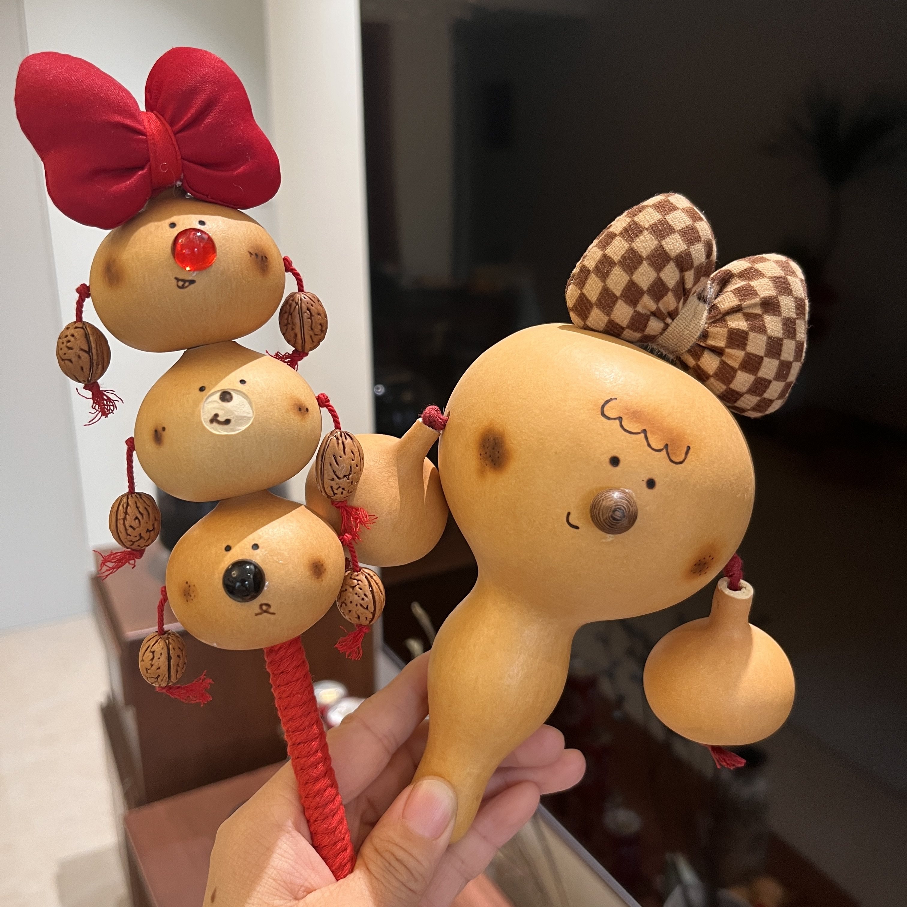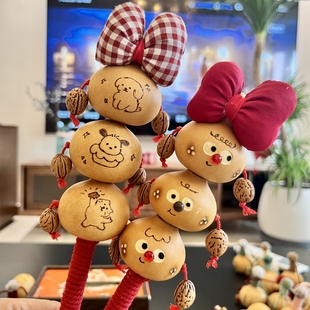 纯手工非遗烙画天然文玩葫芦拨浪鼓冰糖葫芦串桃核国潮可爱工艺品