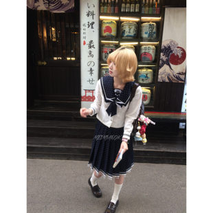 甜美波点刺绣绀色学院收腰显瘦 莓喵jk原创水手服jk套装 小羊卷