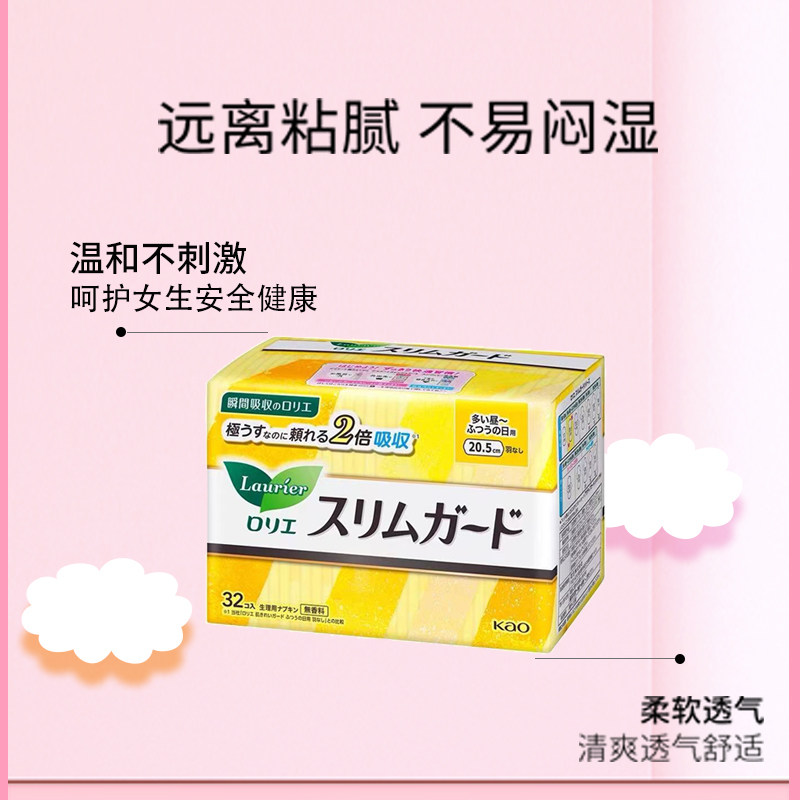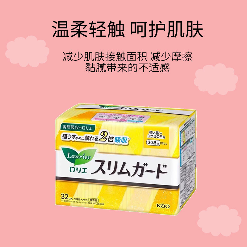 日本花王乐而雅卫生巾20.5cm32片2包日用超薄瞬吸无护翼 自营