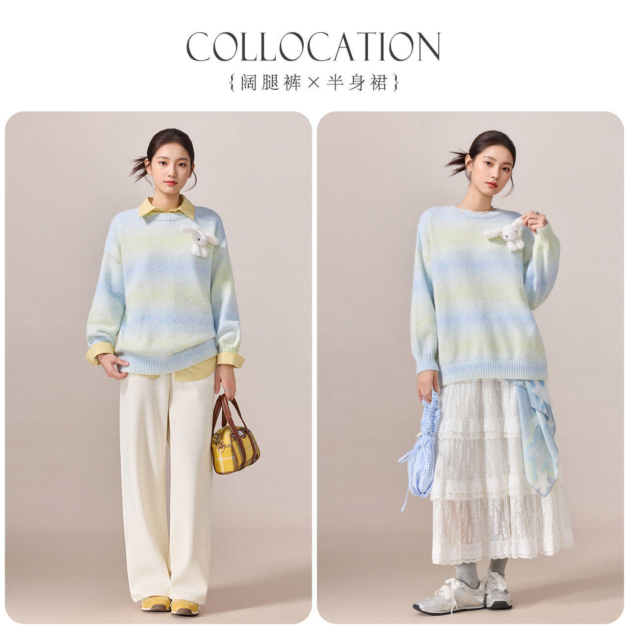 时尚 韩版 休闲设计感宽松百搭毛织中上衣 爱依服2025秋冬新款 IEF