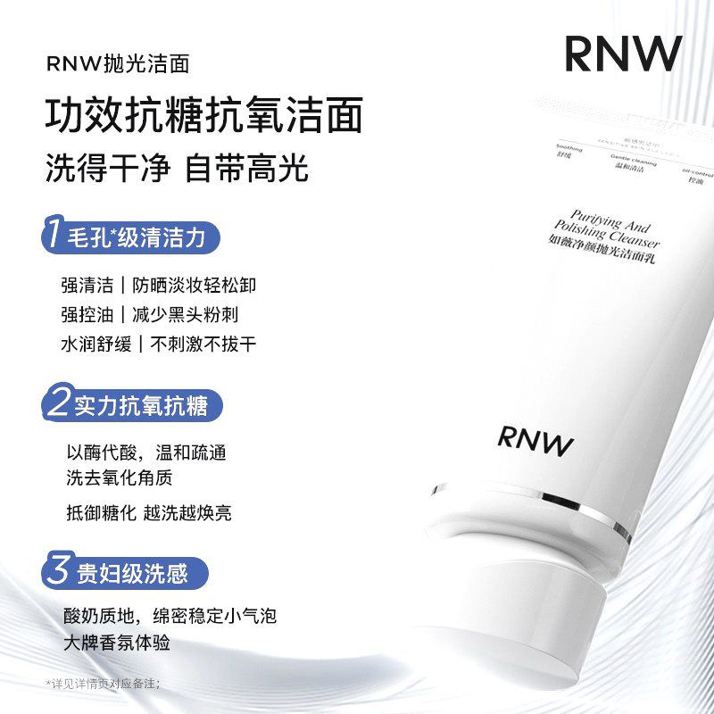 RNW 洁面乳男深层清洁毛孔卸妆膏 如薇抛光温和控油洗面奶焕亮保湿