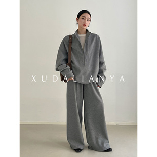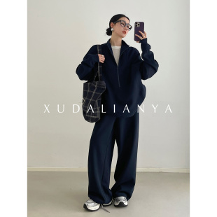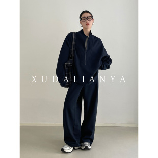 两件套女 卫衣休闲阔腿裤 徐大脸吖定制 松弛感早春宽松运动套装