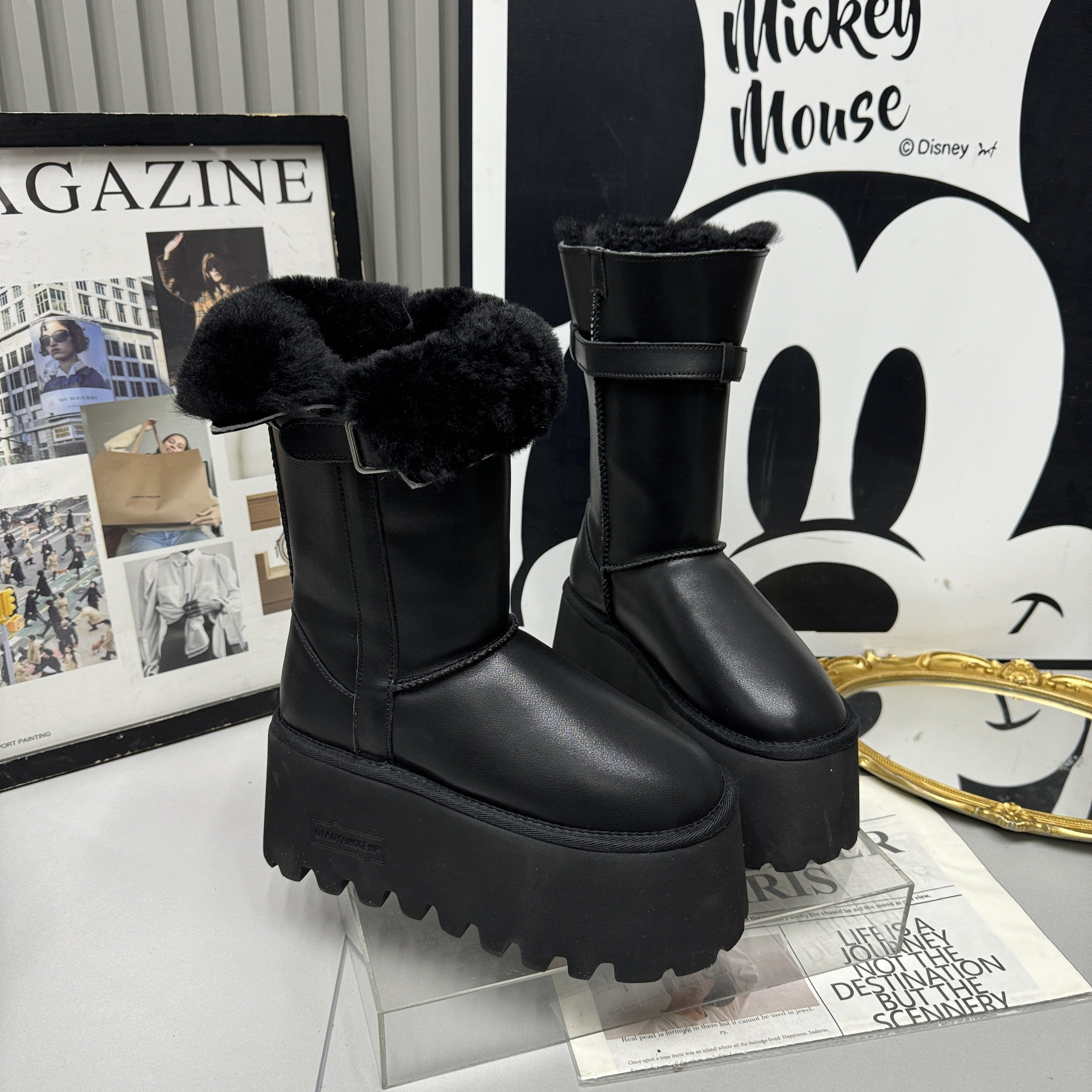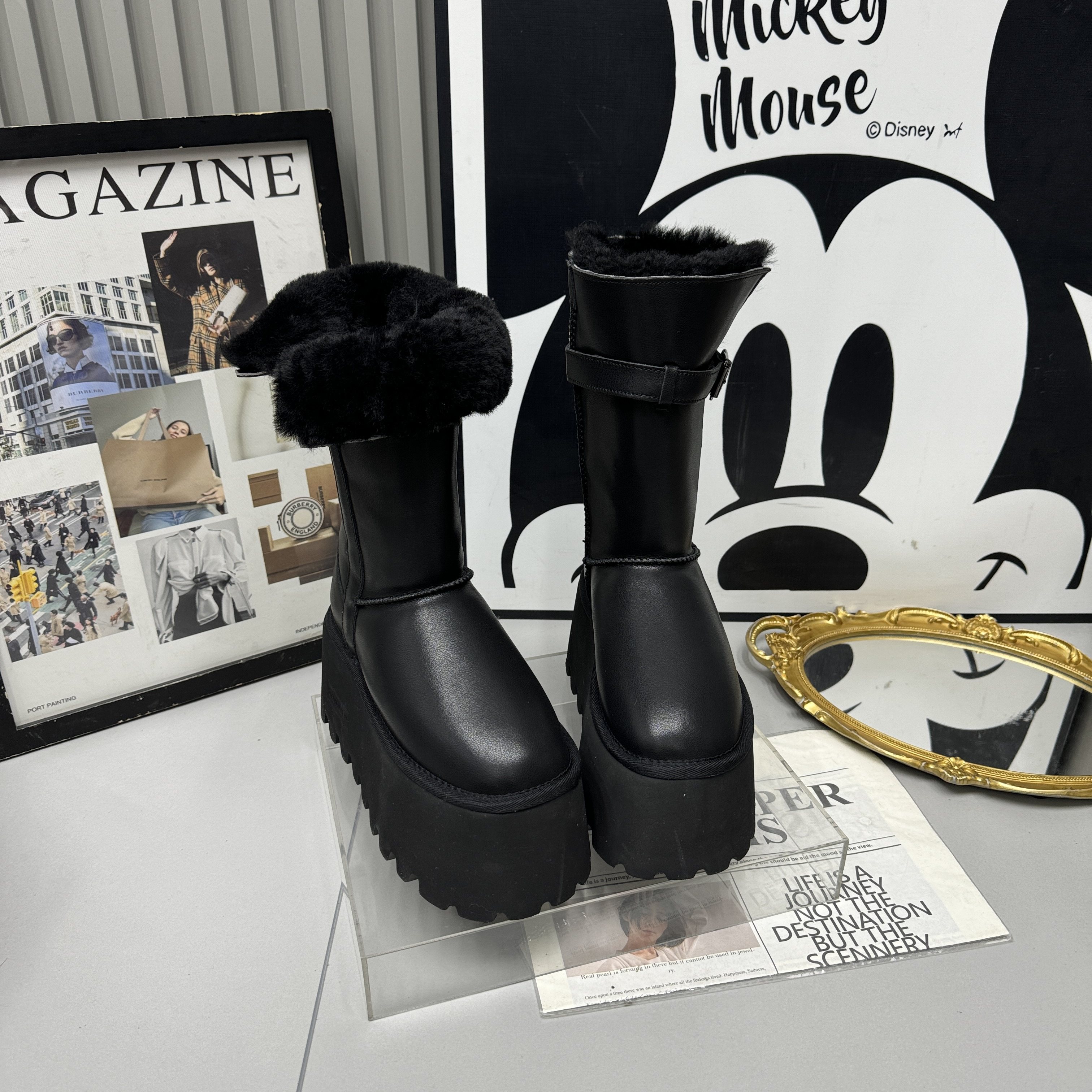 2025新款 雪地靴 真皮小个子增高超厚底羊毛秋冬百搭休闲中筒靴女鞋