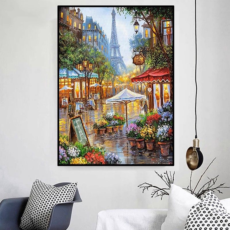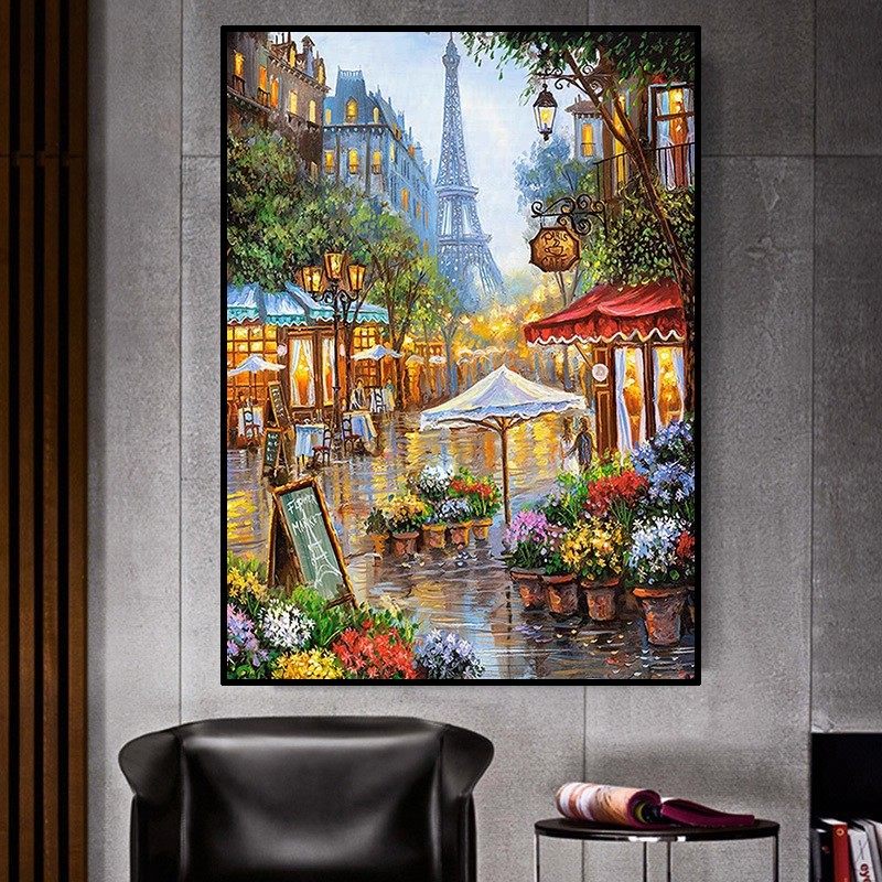 饰画成品仿油画建筑高级感卧室客厅喷印挂画 装 埃菲尔铁塔欧式 风格